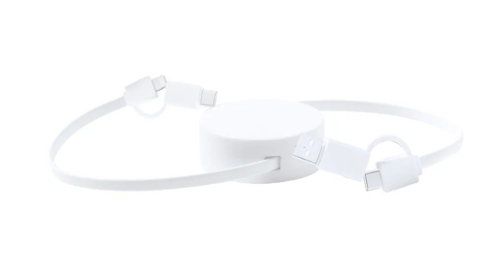 Telescopic USB charger cable in ABS plastic with micro USB, USB-C and Lightning connectors. With USB and USB-C inputs.