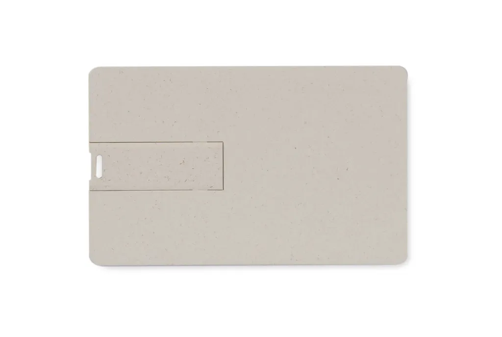 The ECO CARD is a 64 GB portable USB stick made of wheat straw plastic. The shape of the credit card gives a large printing area and ensures easy storage, even in a wallet. Usb standard: 2.0, write speed 6 MB/s; read speed 16 MB/s.