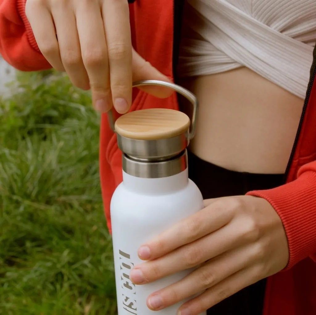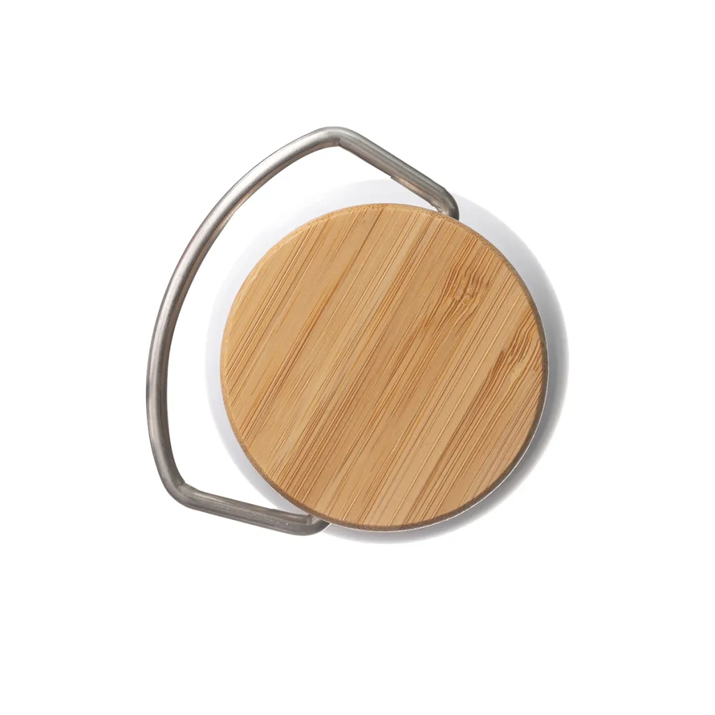 500ml leak-proof vacuum bottle made from stainless steel. Vacuum between two walls gives the flask perfect thermal insulation properties. The inner wall is made from 18/8 upgraded steel. The lid is made of bamboo wood, equipped with a metal handle. The bottle is suitable for cold and hot liquids. It keeps the temperature above 40 ° C for 15 hours.