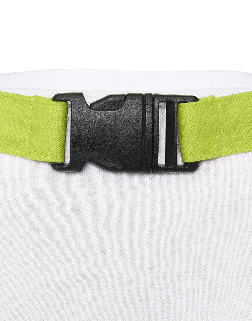 ·205 g/m² ·65% Polyester, 35% Cotton ·Colourfast ·Easy care ·Reactive dyed ·Safety fastener on neck tie (no danger of suffocation) ·Ties to waist ·Dimensions: 80 x 60 cm ·Washable up to 60°C