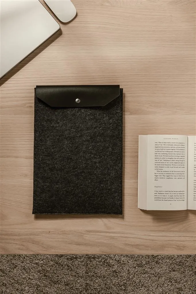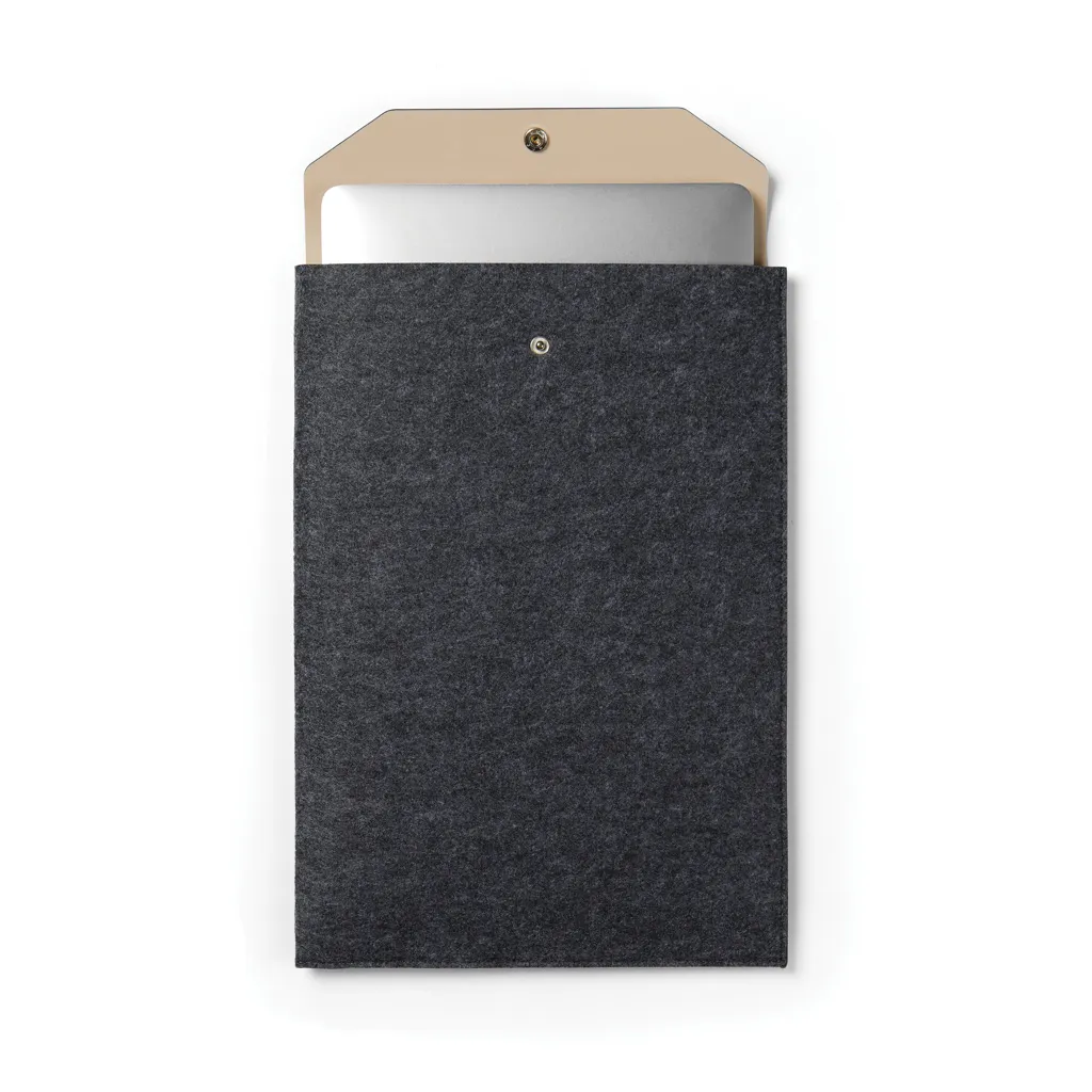 Laptop sleeve designed with a sleek, clean aesthetic using GRS recycled felt with a mélange effect. This sleeve effectively protects your computer from bumps and moisture. It features a PU flap opening for easy access and added elegance. The inner dimensions of this case are 34x2.5x24 cm, making it suitable for computers with an overall size of 14 inches. Please note that the dimensions of the display are not the same as the dimensions of the entire computer. Certified by GRS (Global Recycled Standard), GRS certification guarantees that the entire supply chain of the recycled materials is certified. The total recycled content is based on the overall product weight. This product contains 82% GRS recycled felt.