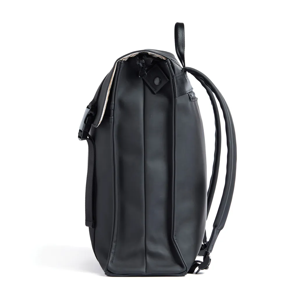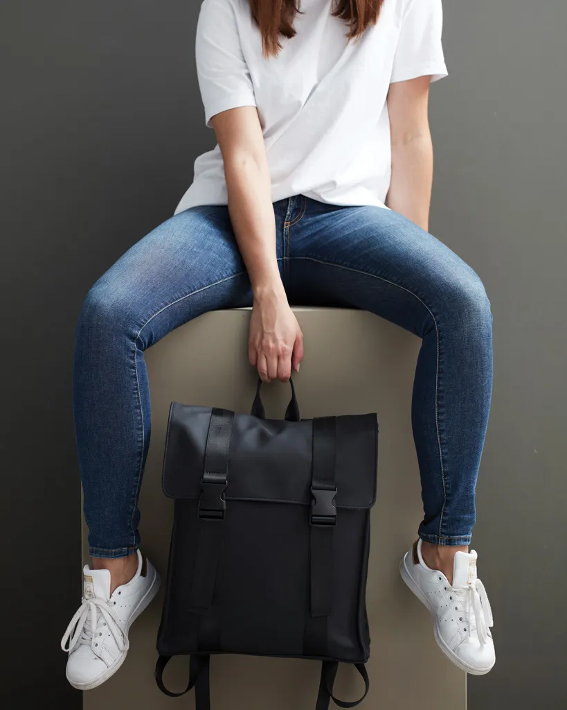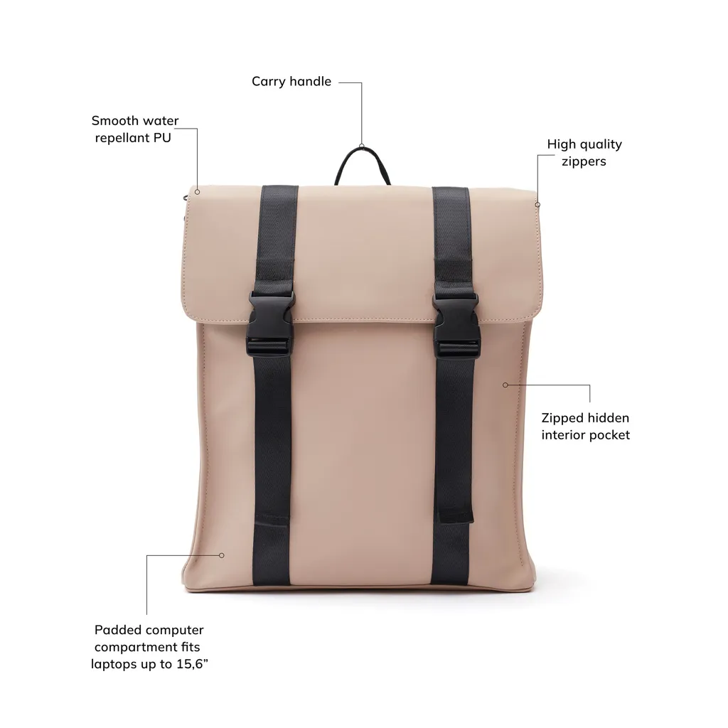 Minimalistic and clean backpack that suits all occasions. The backpack is made of water-repellent nubuck vegan leather and has adjustable straps for optimal comfort. The backpack is also equipped with a zipper pocket on one side and a hidden pocket on the back, so you can easily turn your back without worrying about your valuables. Works equally well as a work bag and as a school bag.
