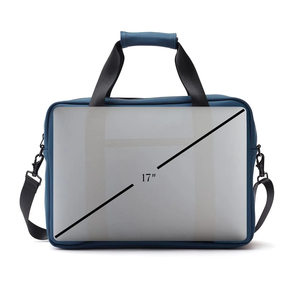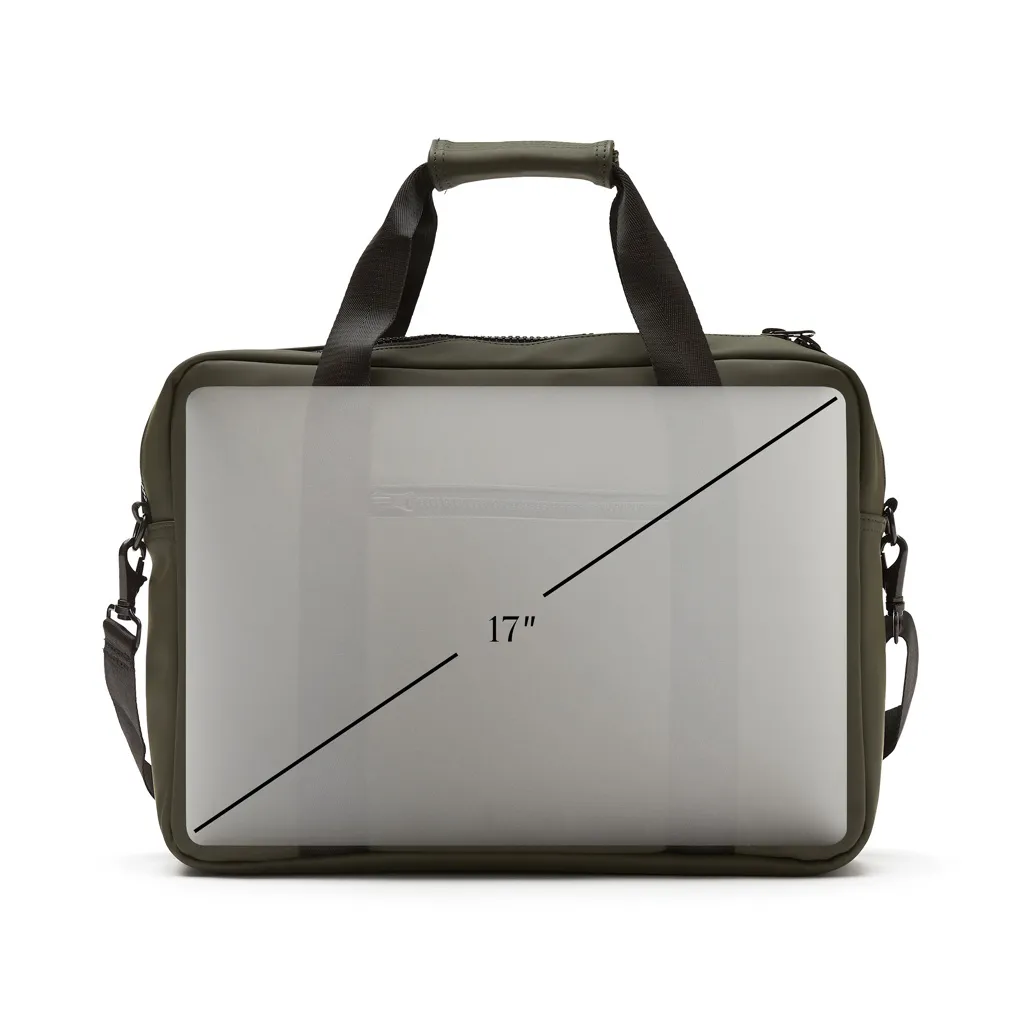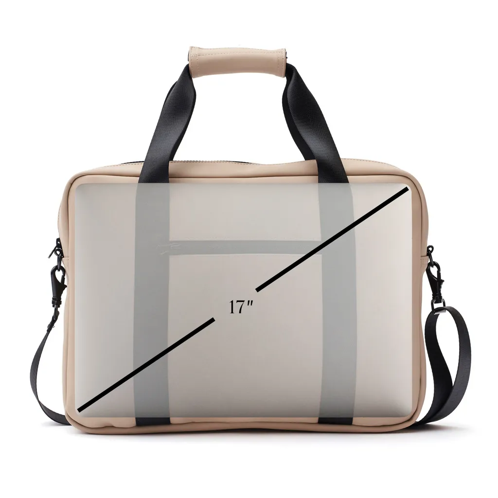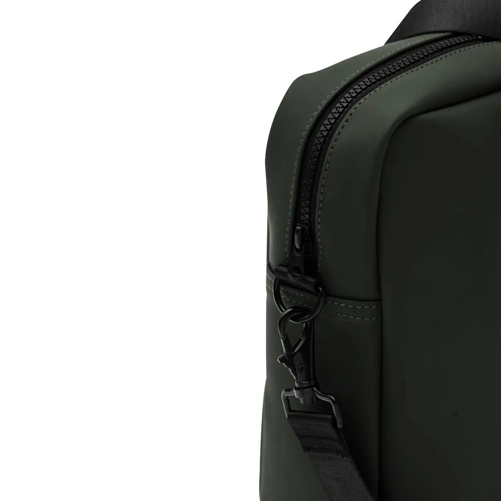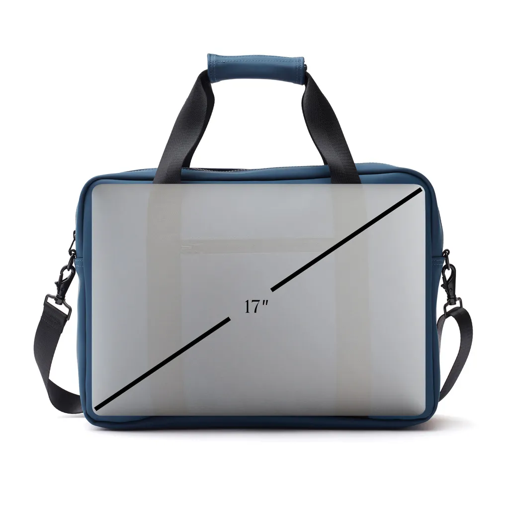 Modern and clean design computerbag. Functions and form comes together, besides the ordinary computer pocket this bag also has place for pens, documents and other belongings. The bag is produced in a water repellent material, with both shoulder strap and carry handles. It also includes an attached band on the backside, so it fits your trolley when travelling.