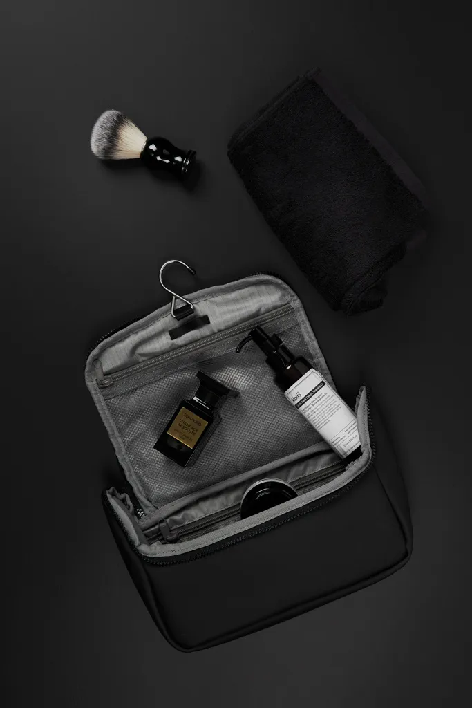 Keep your travel essentials organised in style with our Travel Toiletry Bag, featuring a water-repellent nubuck-PU material that is both stylish and practical. The material is easy to clean and repels water, making it perfect for use while on the go. The inside of the bag is maximised for organisation, with several pockets for all your toiletry essentials. The bag also features a hook design, allowing it to be easily hung up when travelling.