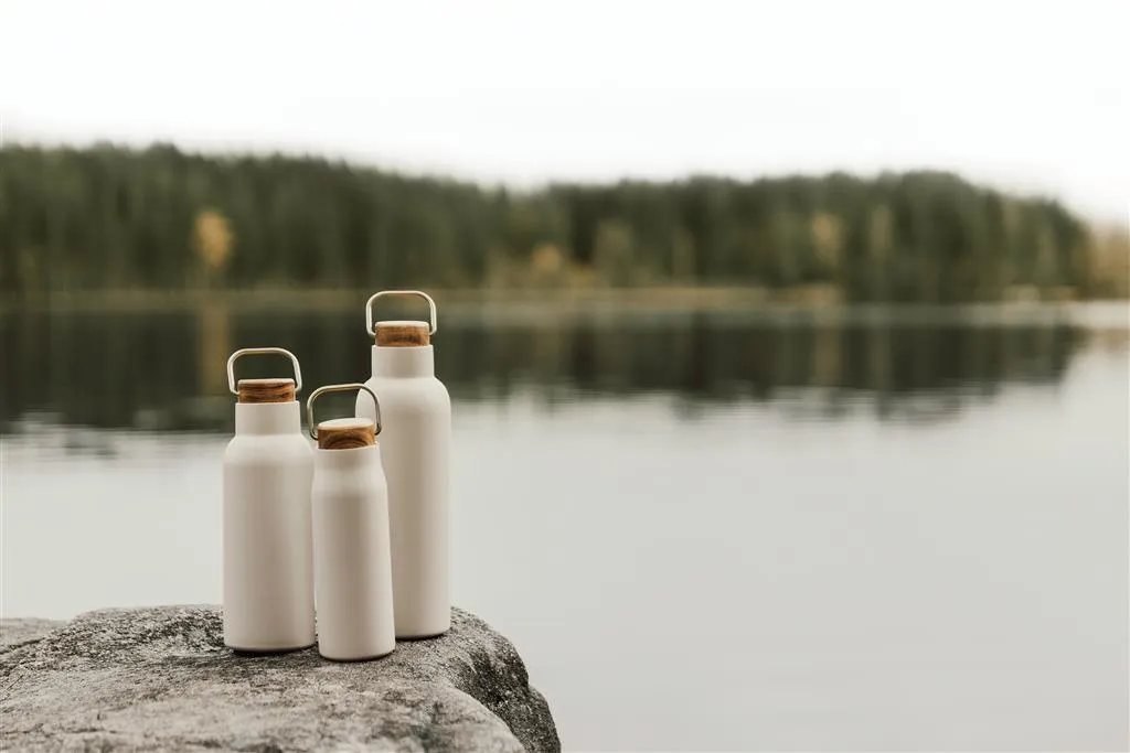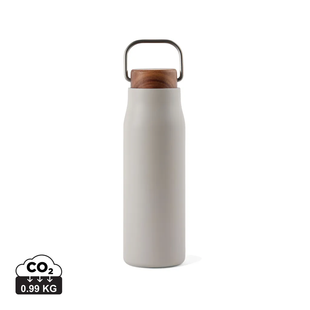 Ciro RCS recycled vacuum bottle is an elegant and functionally designed thermos bottle. The bottle has a lid of acacia wood with a metal loop, which makes the bottle easy to carry with you when you're on the go. The vacuum construction with double walls in recycled stainless steel ensures that the bottle keeps the temperature intact for a long time, both hot and cold drinks. Certified by RCS (Recycled Claim Standard), RSC certification guarantees that the entire supply chain of the recycled materials is certified. The total recycled content is based on the overall product weight. This product contains 69% RSC-certified recycled stainless steel. The bottle is easy to clean and should only be cleaned by hand. Including FSC®-certified kraft packaging.