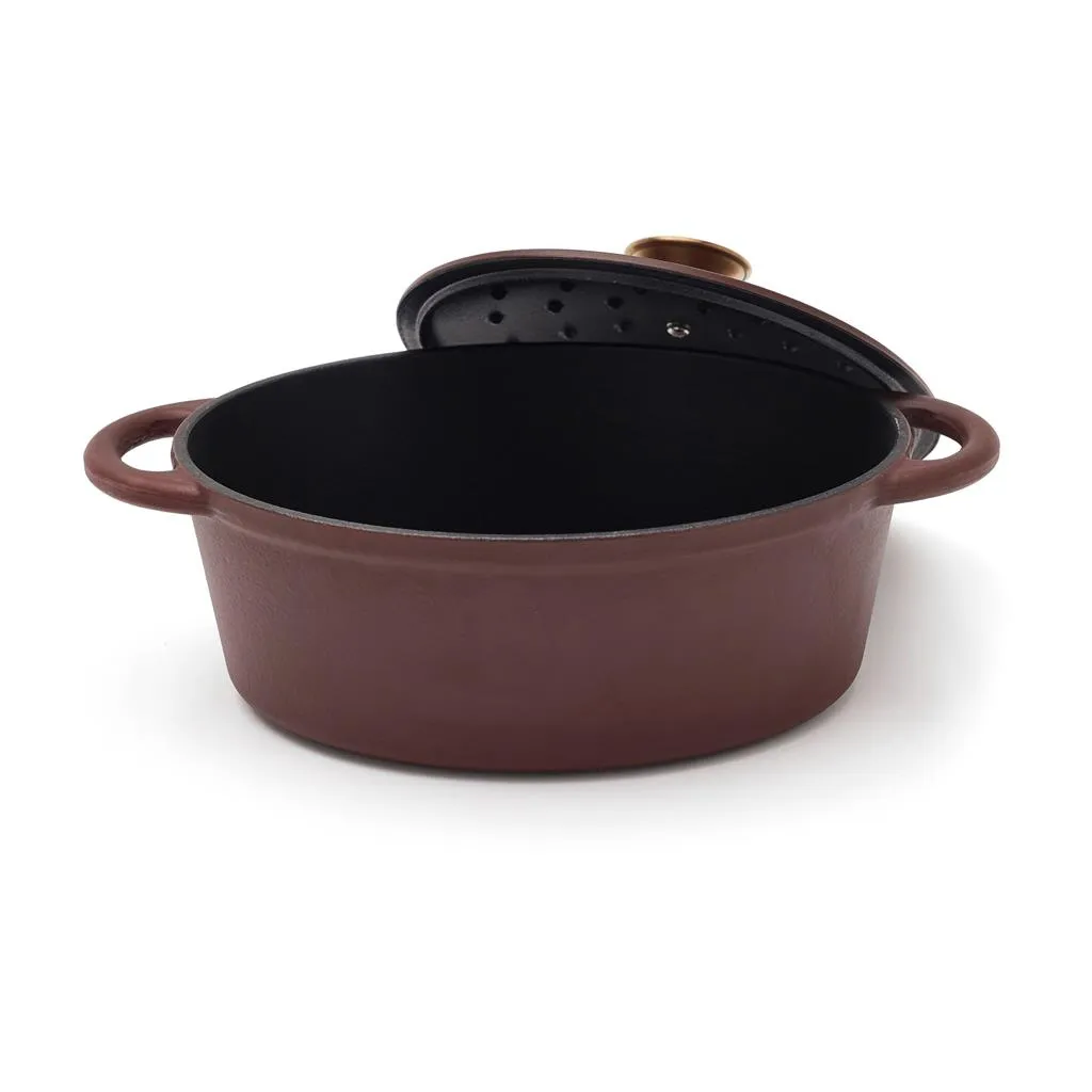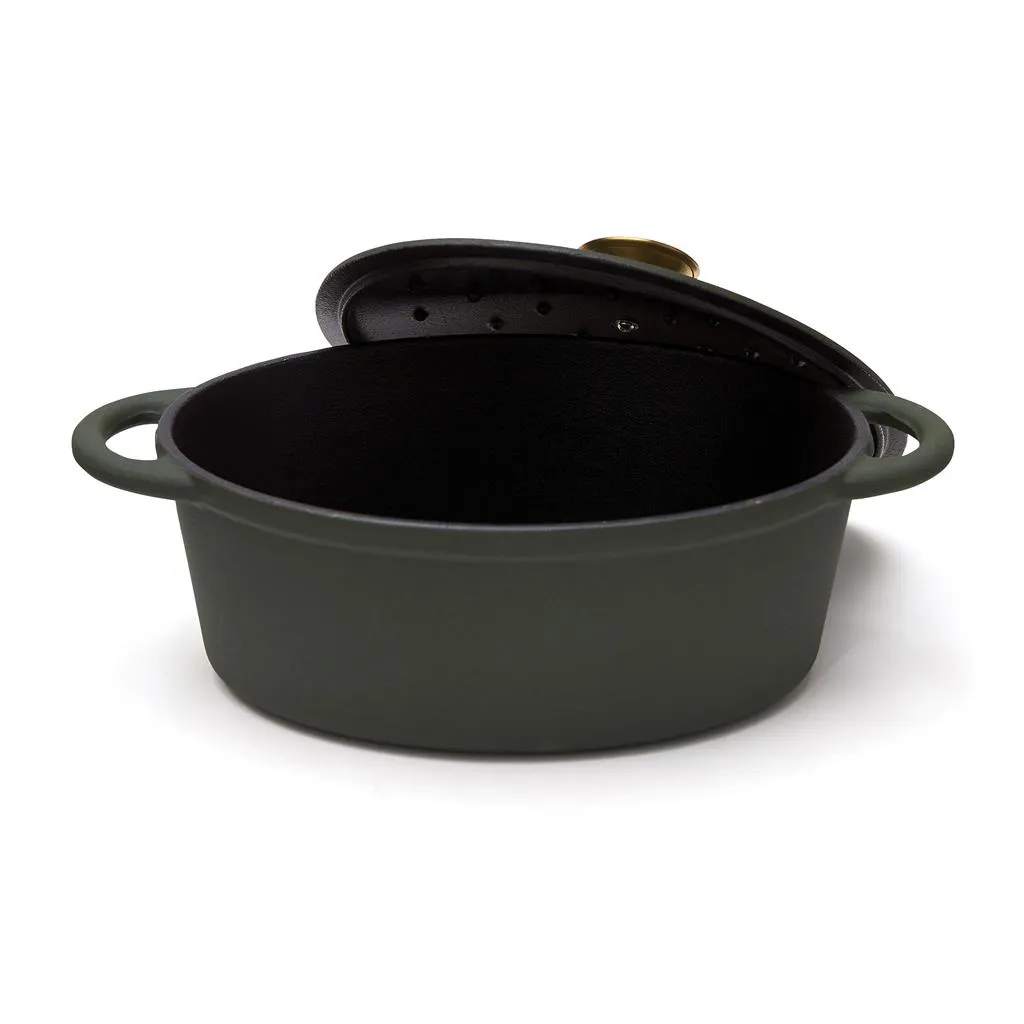 Introducing a classic cast iron pot from the Monte series, perfect for casseroles and slow cooking with its excellent heat capacity. Its thick base is designed to prevent contents from burning easily, while the lid features small spikes that enable even and gentle distribution of water vapour from condensation over the contents, providing a self-basting feature. The pot's black enamel interior features larger pores and a slightly rougher surface that gradually fills with oil over time, producing a non-stick patina similar to raw cast iron. This versatile pot is suitable for all types of hobs, including induction hobs.