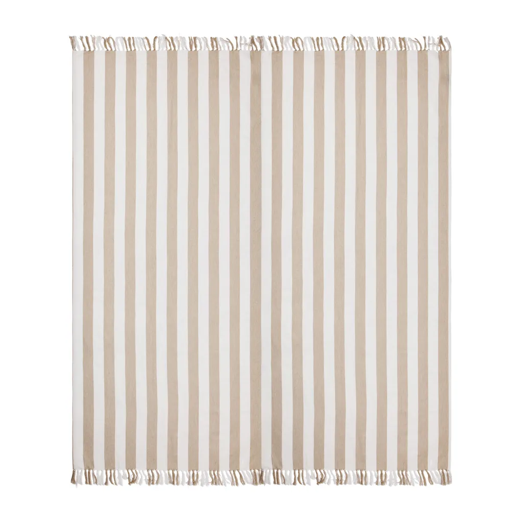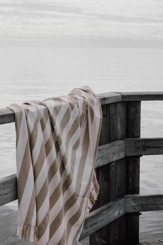 This family hammam beach towel features a classic two-colored striped pattern with fringes on the short sides. With its generous 180×180 cm, it’s perfect for sharing with loved ones, whether you’re relaxing at the beach or lounging by the pool. Crafted from a lightweight and airy 200 gsm blend, it combines the comfort of cotton with the quick-drying benefits of polyester. Certified by GRS (Global Recycled Standard), GRS certification guarantees that the entire supply chain of the recycled materials is certified. The total recycled content is based on the overall product weight. This product contains 70% GRS certified recycled cotton and 29% GRS certified recycled polyester.