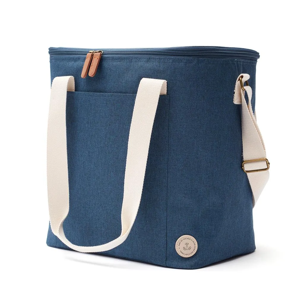 The weekend getaway will definetly get better with this trendy cooler bag, it is also practical and simple to clean. The cooler bag is in a melange fabric accompanied with PU details which makes it as fancy as a normal bag. Produced in 50% recycled polyester from recycled PET bottles. On the front of the bag is a pocket for belongings. You can either carry it in its handles or over your shoulder.