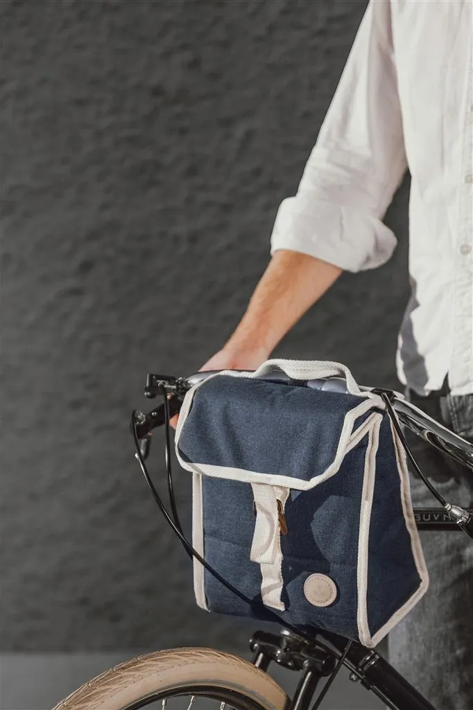 This modern, stylish cooler bag is perfect for your excursions. It is made of 50% recycled material from PET bottles. The inside can easily be wiped out and thick PEVA padding keeps the bag cold for a long time. With a touch fastener on the back of the bag, you can secure it to your bicycle handlebars. The bag also has an adjustable cover, ensuring optimal cold insulation every time.