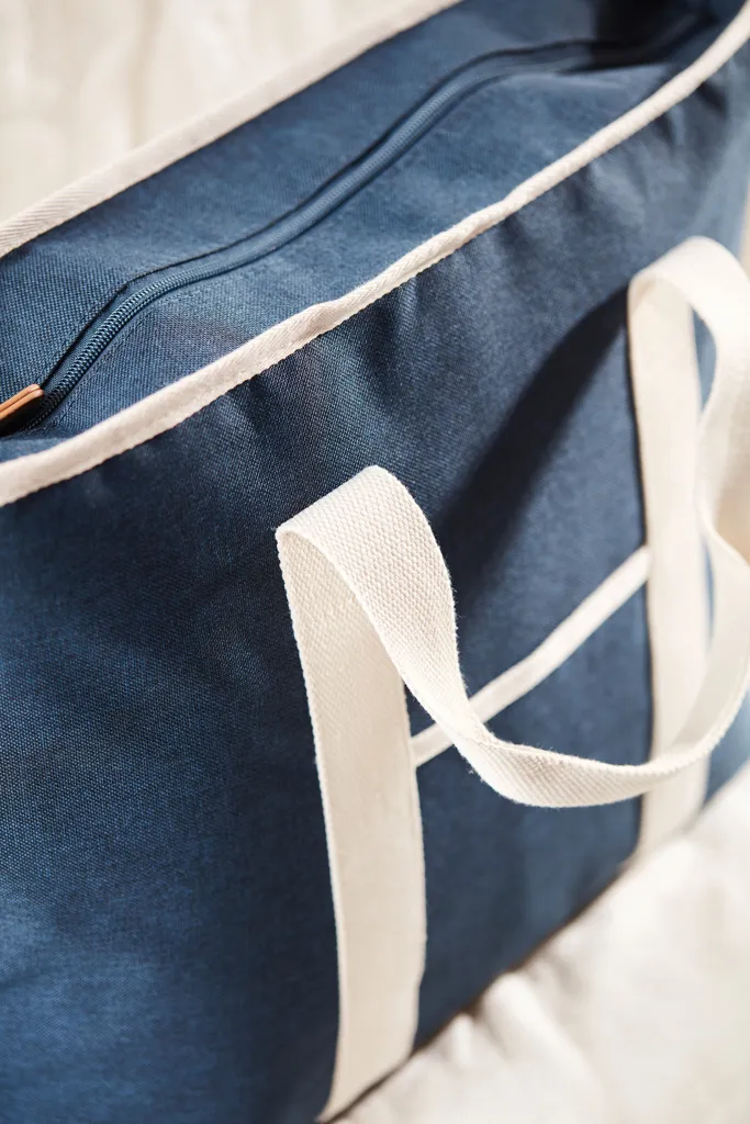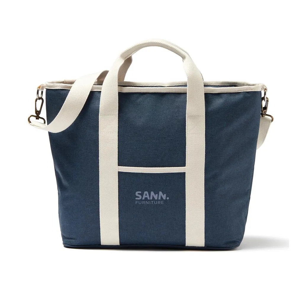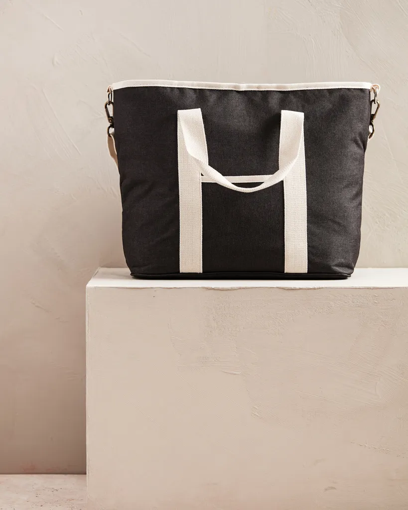 Cooler bag that is mottled tone by tone with details in imitation leather and cotton so that it is as beautiful as an ordinary bag and you can picnic in style. Made from 50% recycled material from PET bottles. There is also a small compartment on the outside of the cooler bag, providing space for other items as well. The thick PEVA padding ensures that the cold is retained for a long time. It is also easy to clean and dry after use. With an adjustable shoulder strap and double handle, you have different ways to carry the cooler bag.