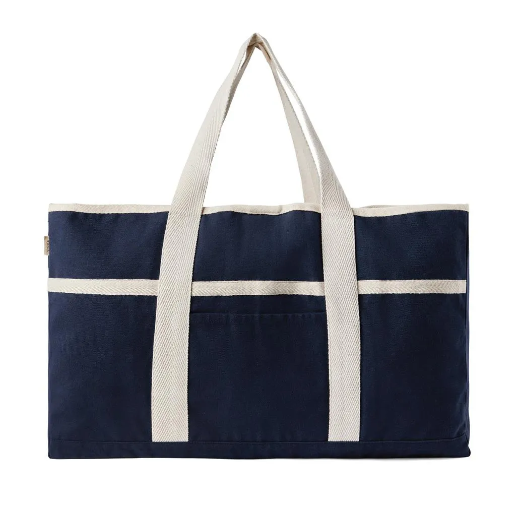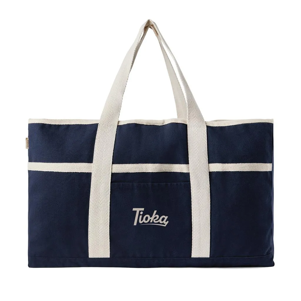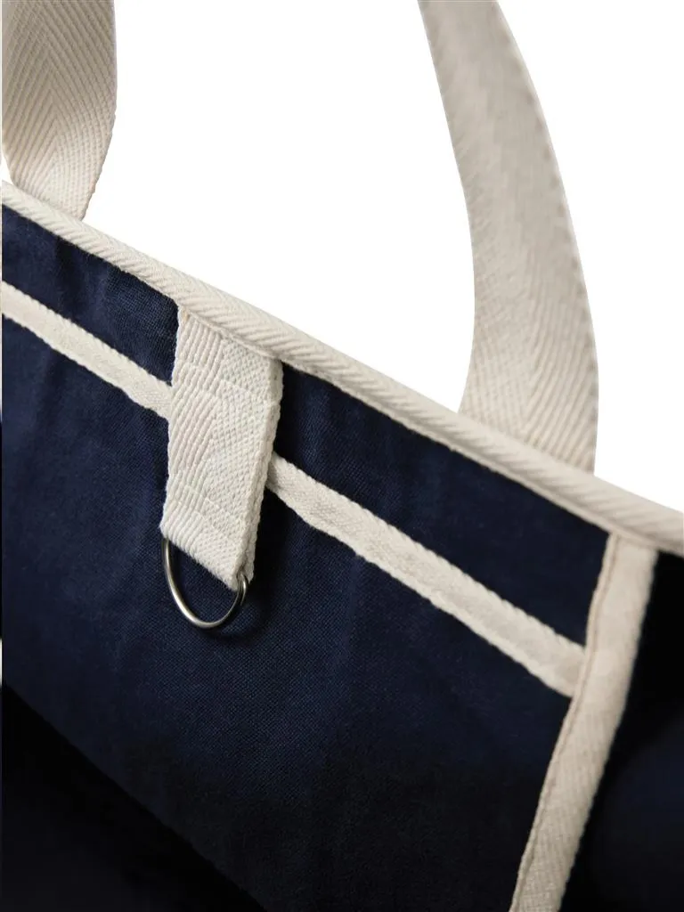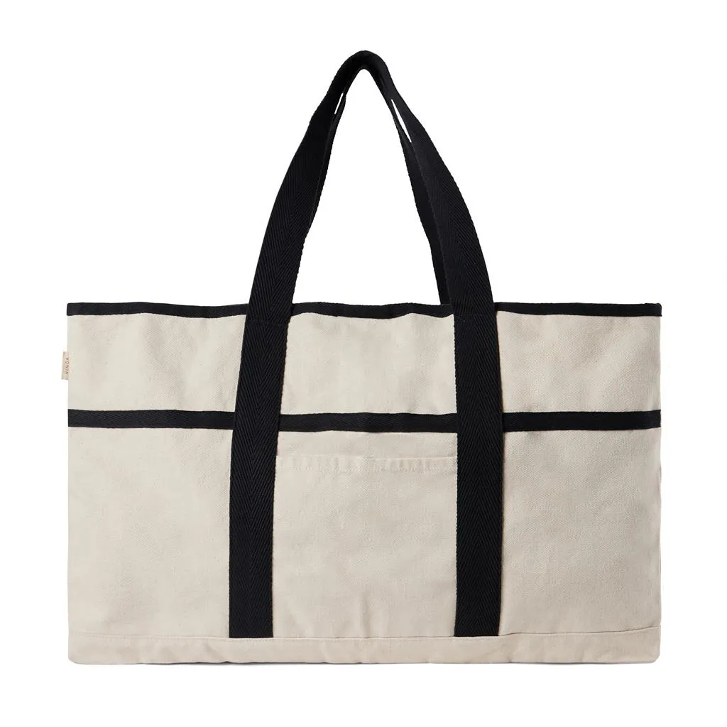 Hit the beach in style with this generous beach bag. Its spacious design, complemented by a towel holder at one side, makes it perfect for beach outings or picnics. The interior features a pocket to keep your valuables safe and secure. Crafted from 500 gsm recycled canvas. The canvas remains undyed and unbleached, eliminating any environmental impact from chemicals. Crafted from 70% recycled cotton and 30% recycled polyester, this bag reinforces our dedication to responsible sourcing. It also features the AWARE™ tracer technology, validating the genuine use of recycled materials. 2% of the proceeds of each product sold will be donated to Water.org.