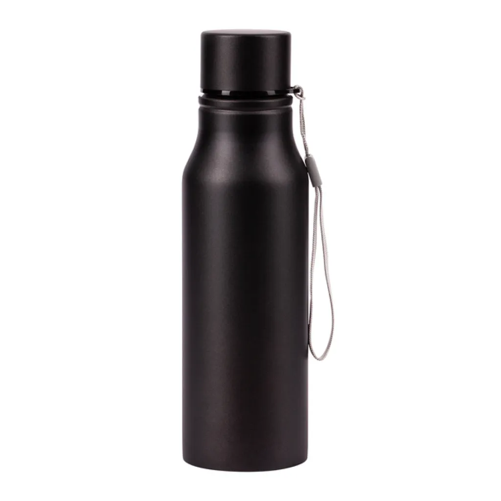 Stainless steel 700 ml water bottle with wrist strap. Made from 18/8 stainless steel.