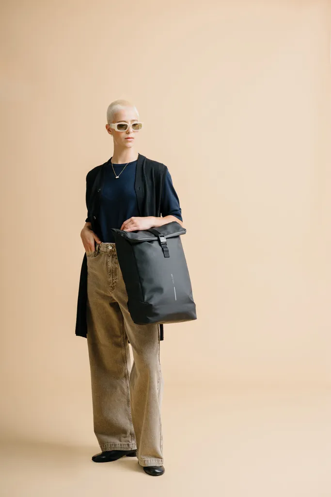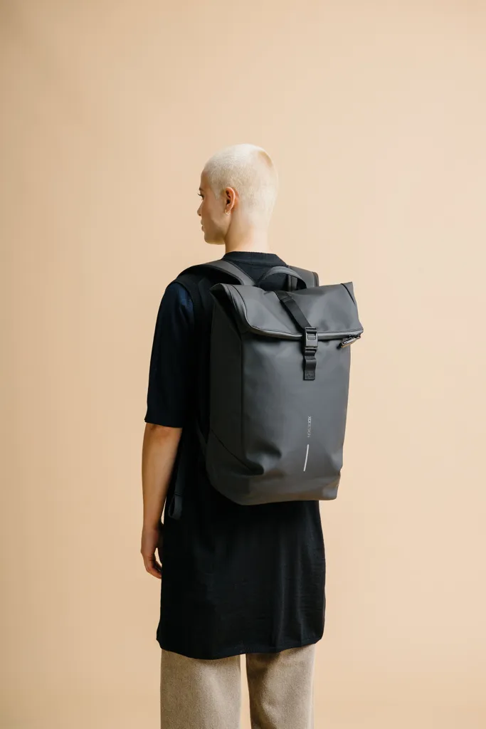 Experience versatile, all weather design and enhanced security with Urban backpack. Its unique L shaped wide opening main compartment,complete with an expandable section and ample space for a 16 inch laptop, offers effortless access to your essentials. The anti theft design, coupledwith a self locking metal zipper puller, ensures that your belongings remain safe. The addition of a rear pocket and a dedicated water bottle pocketbrings convenience to your daily adventures, making it the ideal companion for urban explorer. This backpack is not only water repellent, it's durable and stylish. Crafted with Aware ™traceable recycled polyester and finished with a soft touch PU coating, perfect for any occasion. 17% recycledcontent. Registered design®