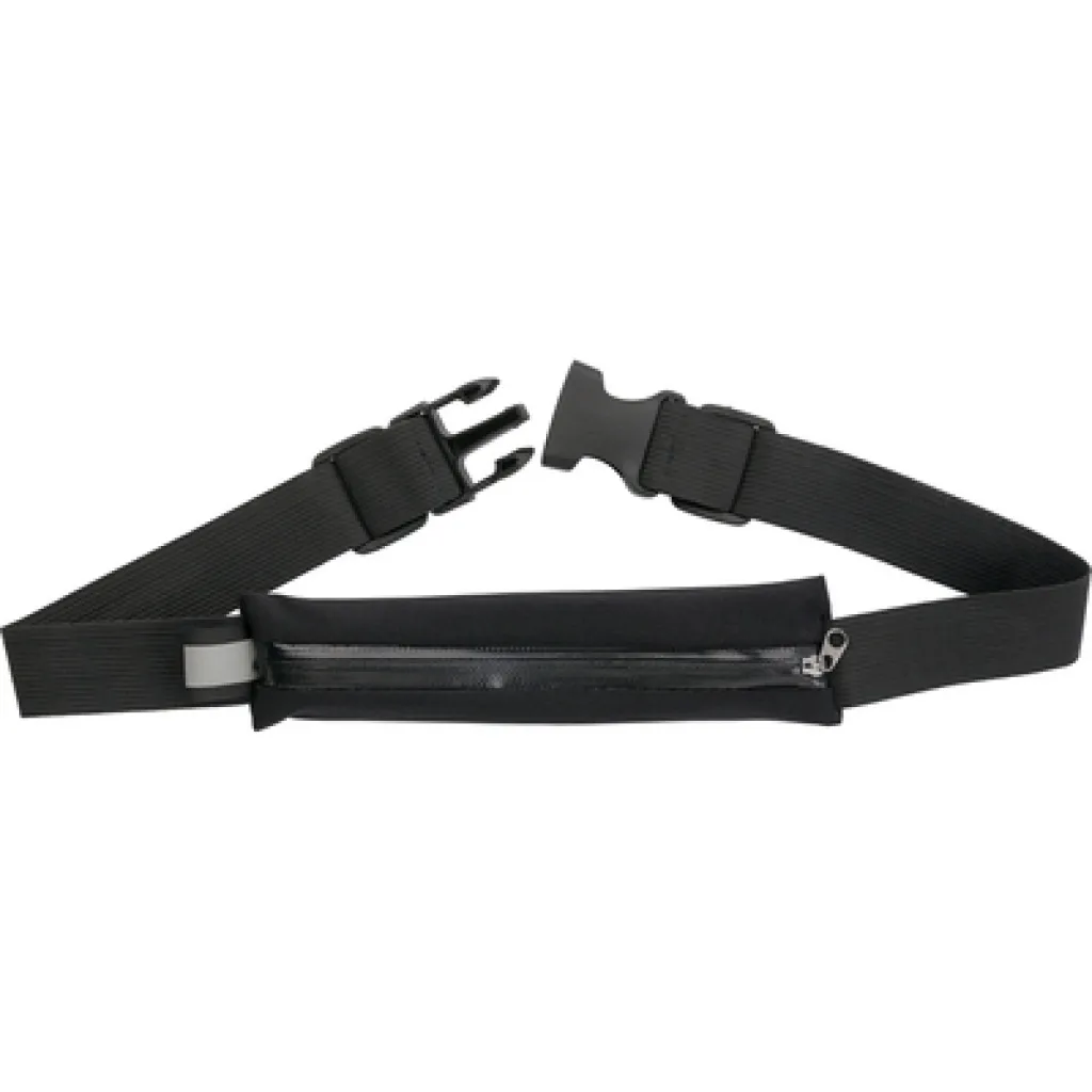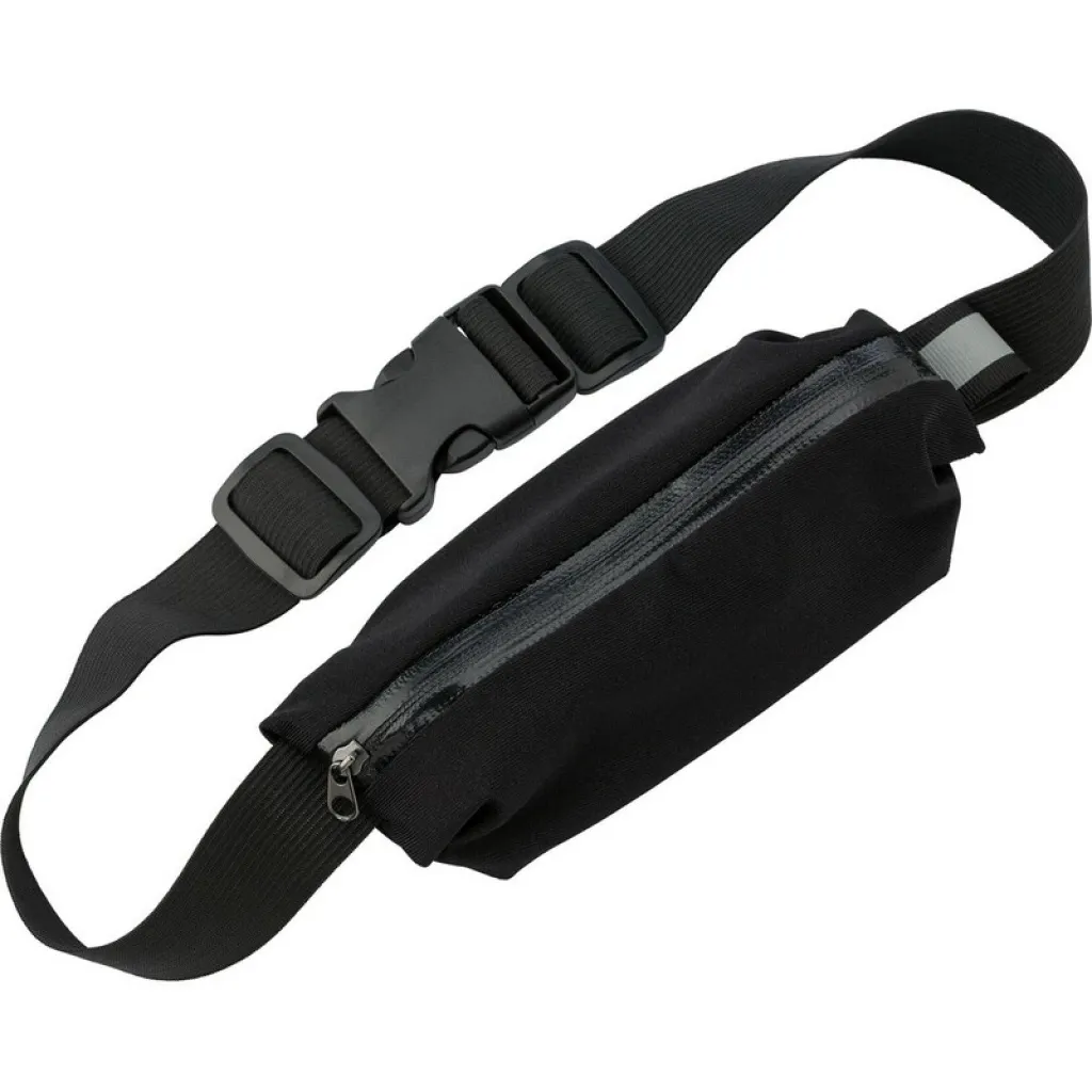 Waterproof waist bag with adjustable rubber band at both sides (2 x 27 cm) and plastic closure, min. circ. approx. 62 cm, max. circ. approx. 93 cm (plus stretching)