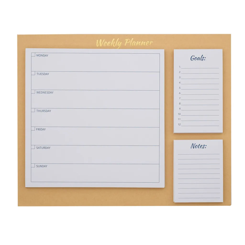 Undated weekly planner notepad (80 pages) to help you organize your daily tasks and schedule. Keep up to date with goals and projects. Stay organized and motivated week in, week out and help to improve your productivity with this desktop planning pad.