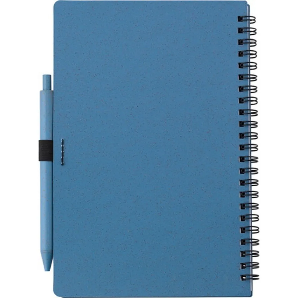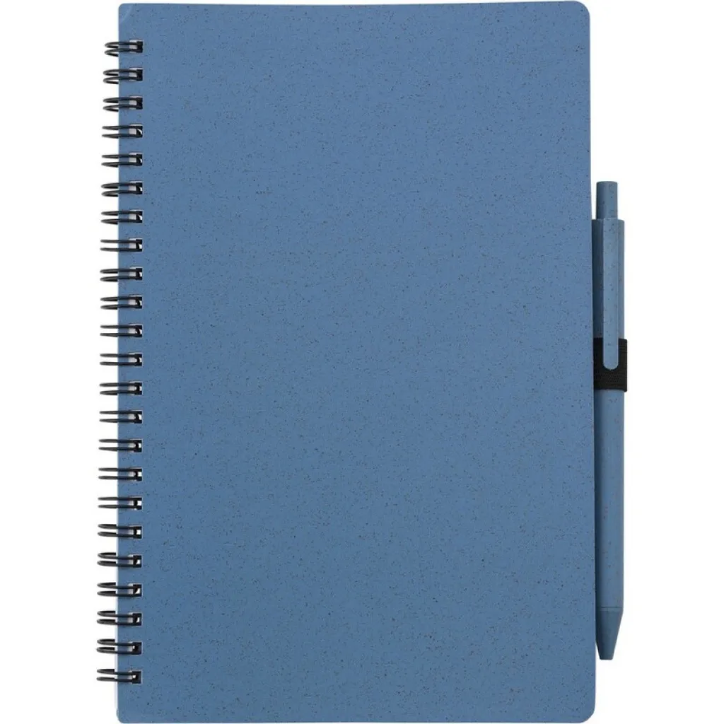 Notebook approx. A5 (70 lined sheets), wheat straw and PP cover, wheat straw ball pen, spiral binding