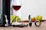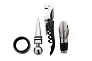 4 pc stainless steel wine set in recycled kraft paper book shape box. Including corkscrew, drop stopper, nozzle and plug.