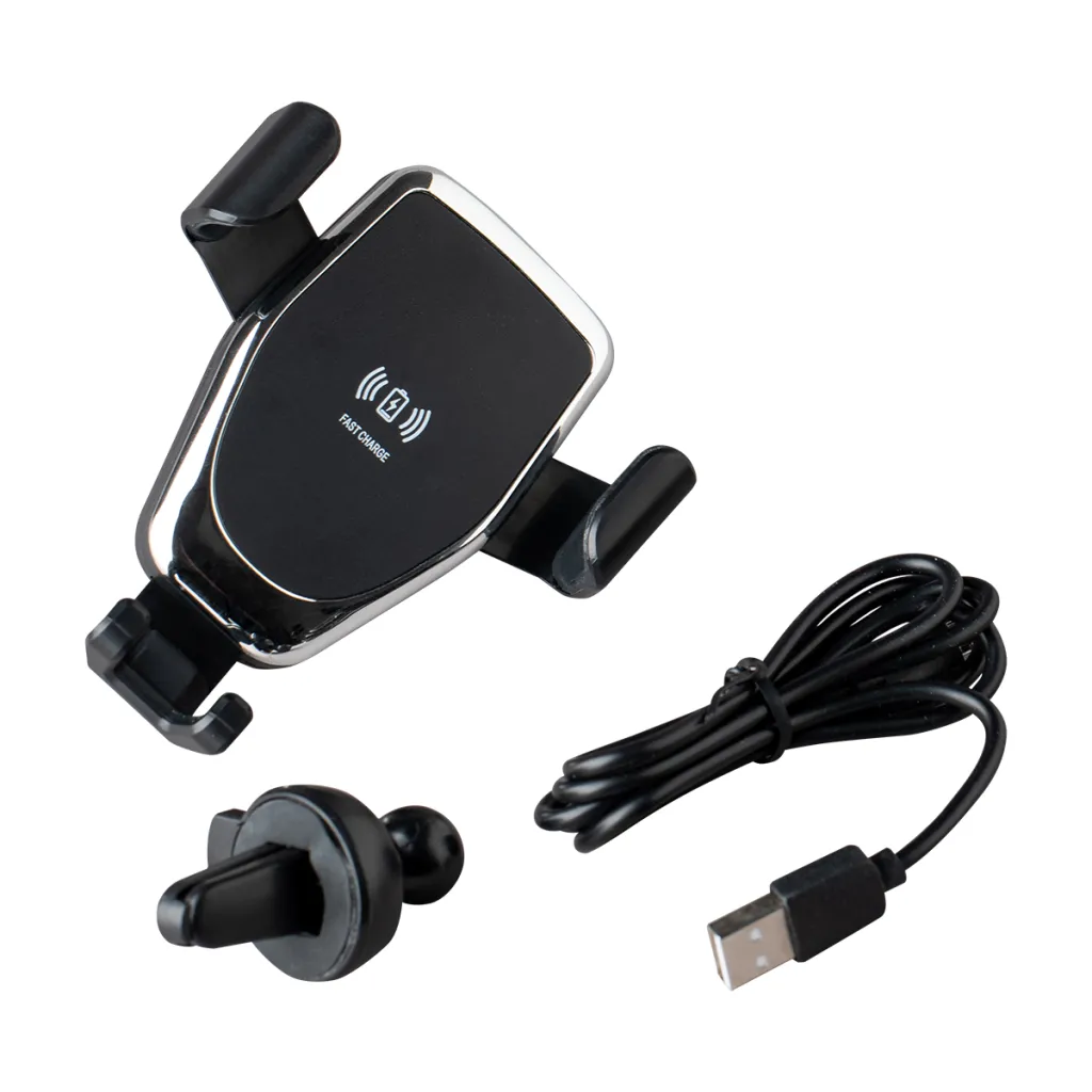 Wireless induction charger built into the car holder, mounted to the ventilation grille. Thanks to the special design, the device can be operated with one hand. The arms of the holder automatically clamp under the weight of the phone and adjust to its size. Frequency: 100-205KHZ. Input: 5V-9V / 1.5A. Output 5V/1A. USB cable included. The charger works with telephones equipped with the induction charging function.