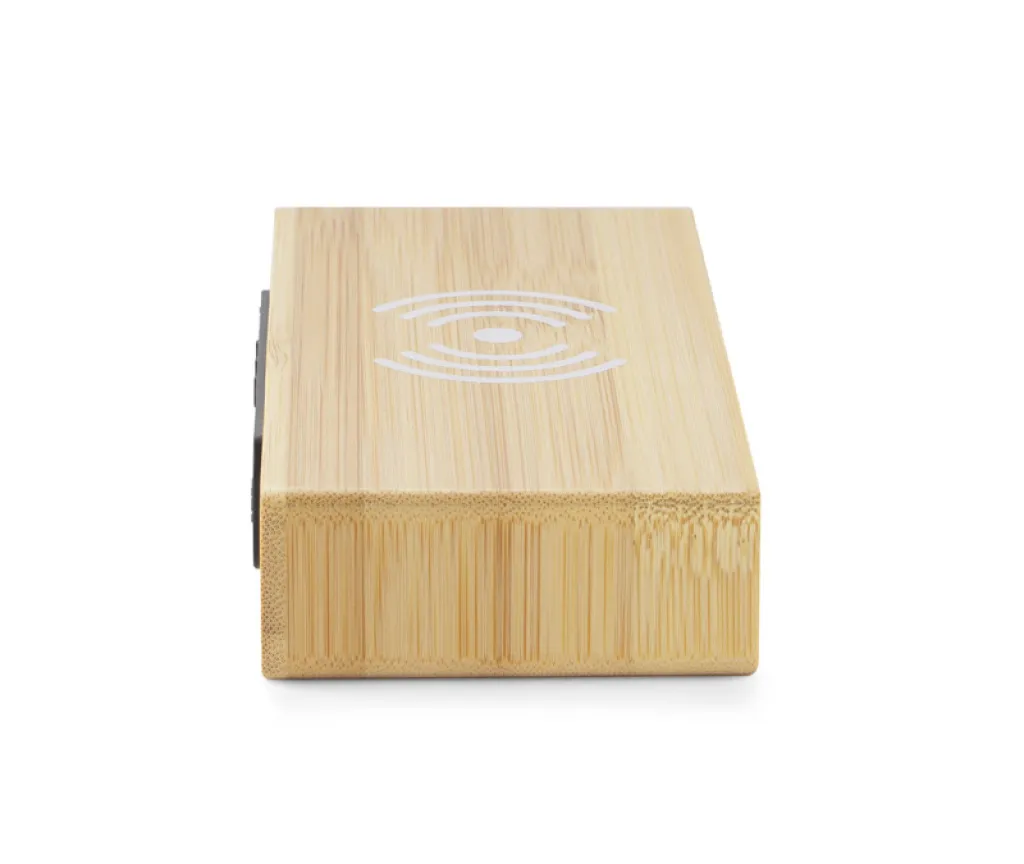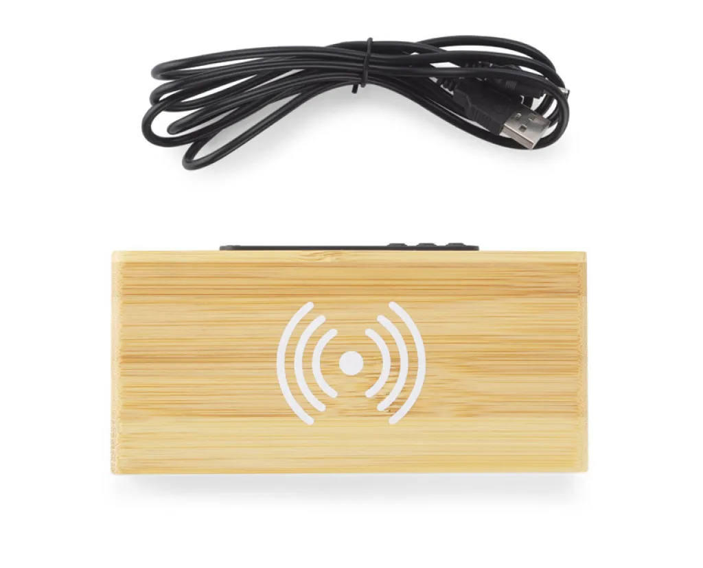 The INDUCTO desk clock is a combination of a digital clock in an eco-friendly bamboo casing with a 5W induction charger. It is a gadget that looks great on a desk and is also extremely practical. Power cable included. Clock with calendar and alarm function. Specifications: power supply - DC 5V / 2A input, AC100-240V 50 / 60Hz, wireless charger output: 5V / 1A (max.)