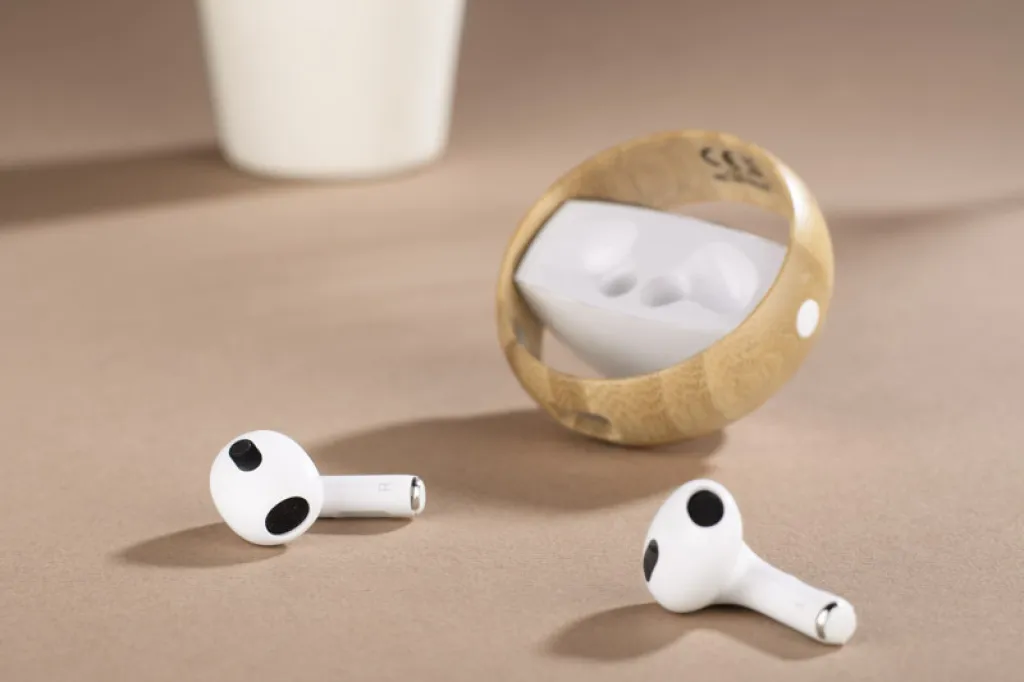The SPOTI wireless headphones are a stylish and modern gadget. Packaged in a handy round case, which looks very striking through the combination of white and bamboo. The handy small size will allow you to enjoy the convenience of use. Technical data: bluetooth version 5.0, battery capacity in each handset 30mAh, battery capacity in the case 230 mAh, operating time 3-4 hours, charging time 1-2 hours, charging port type C.