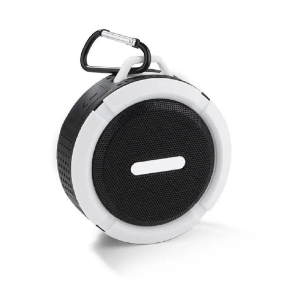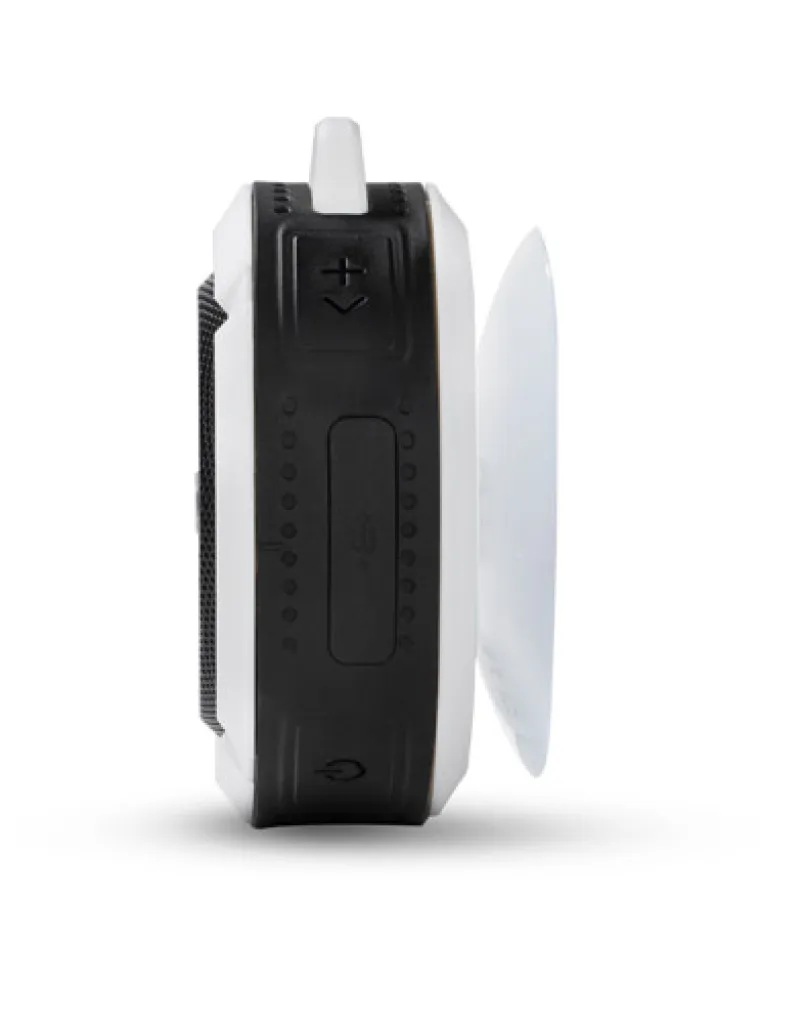 A small speaker with suction cup, its waterproof class is IPX4, i.e. total protection against sprinkling and splashing with water from various directions with intensity up to 10 litres per minute. It is ideal for tourists and in every day use e.g. under light rain. The speaker can be used as a hands-free set. Music can be played via Bluetooth (Version 4.2) or micro SD card. Micro USB charging cable and carabiner included. It has a metal plate designed to comply with the marking. The product complies with relevant European Union Directives and has the CE Certificate. Technical specifications: Output power: 3W x 1 Voltage: 5V S/N ratio: ≥ 70 dB, working time: 1-1.5 hours, 300mAh battery capacity