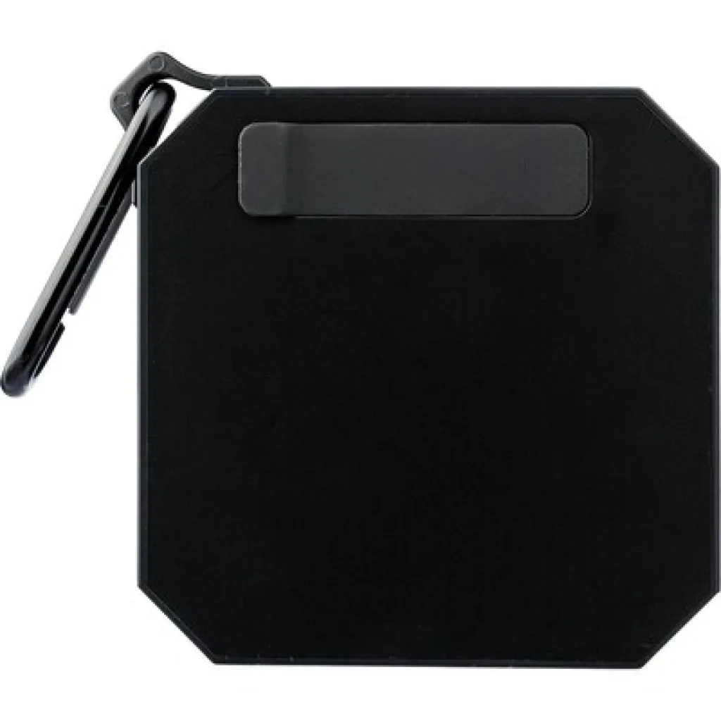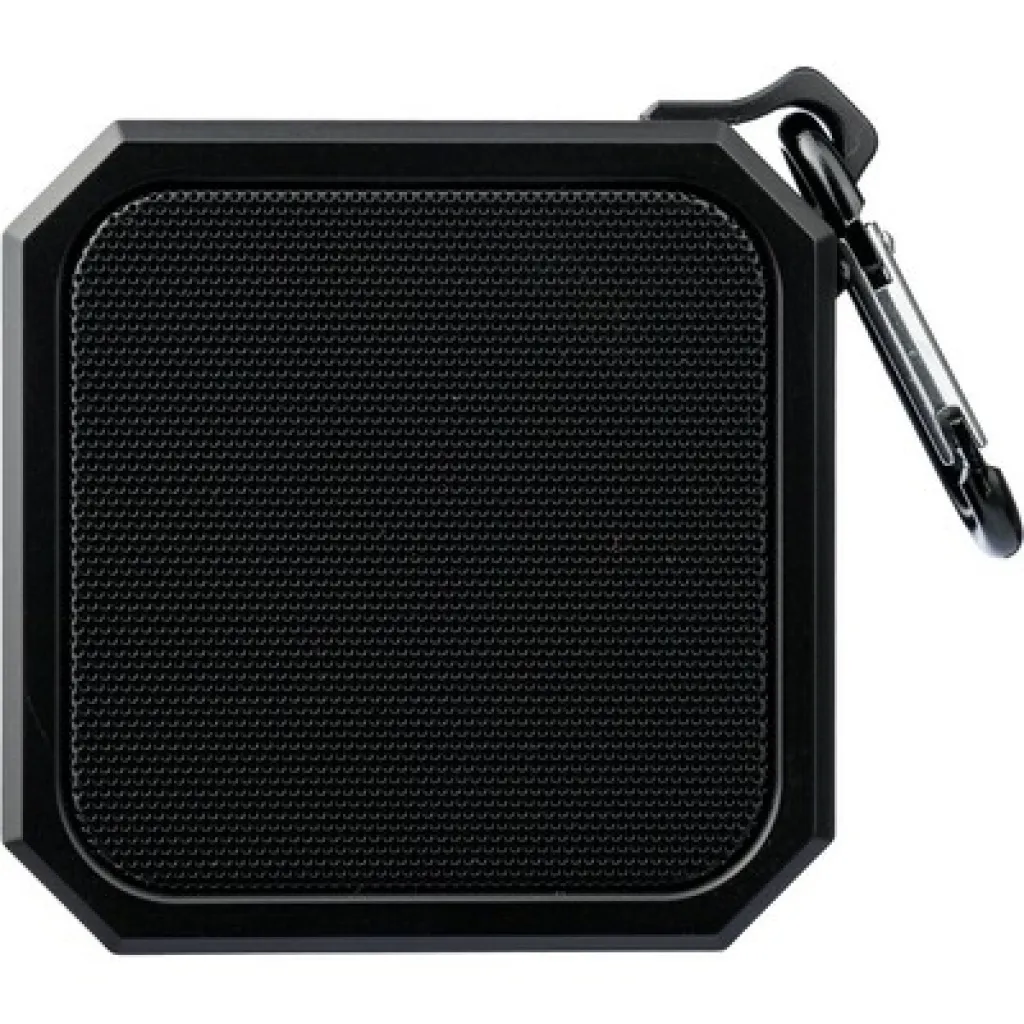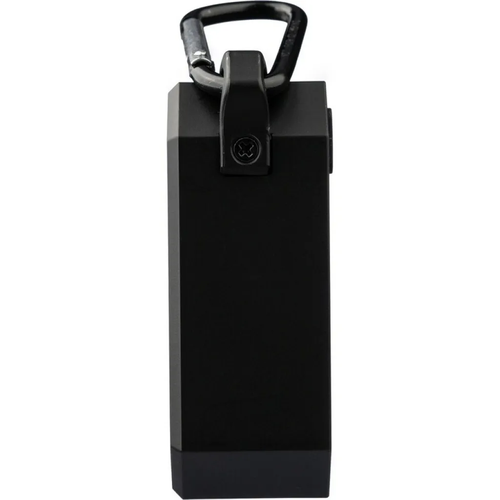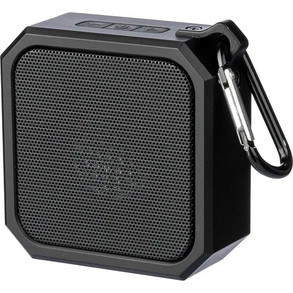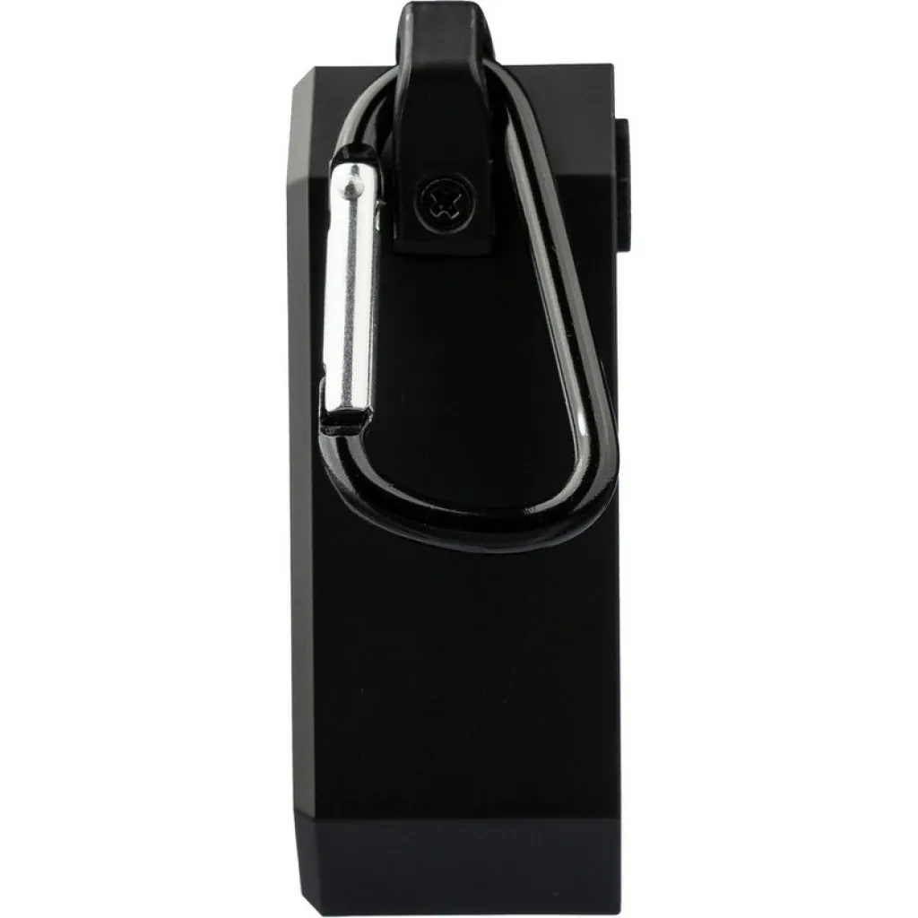 Wireless speaker with carabiner clip for attaching, IPX4 which means protection against light water splashes for a minute, output power 3 W, DC 5 V input, built-in 300 mAh battery, works at a distance of 15-20 meters from the signal source, signal to noise ratio 87 dB , 100Hz-20K Hz frequency, includes 50 cm length type C charging cable, 2 hours time games, BT 5.2, packed in a brown carton box, product made from ABS