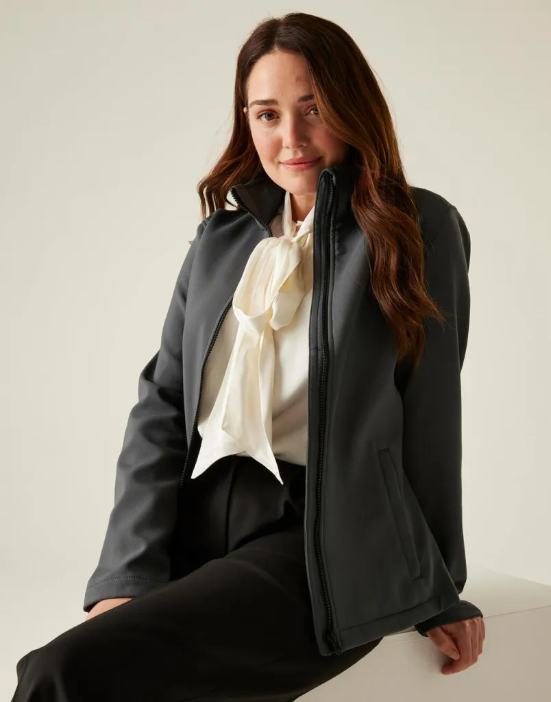 ·265 g/m² ·100% Polyester ·Warm backed woven Softshell ·Full zip with inner stormflap and chin guard ·2 lower pockets ·Adjustable shockcord hem ·Ideal for embroidery, screen, transfer and vinyl printing ·Shaped fit.