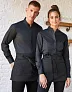·120 g/m² ·57% Cotton, 40% Polyester, 3% Elatane ·Asia-style easy-care long sleeve blouse ·Small stand-up collar ·Tone-on-tone buttons ·Concealed placket (only top button visible) ·Front darts for a fitted waist ·Adjustable cuffs ·Side vents ·Slightly rounded hem.