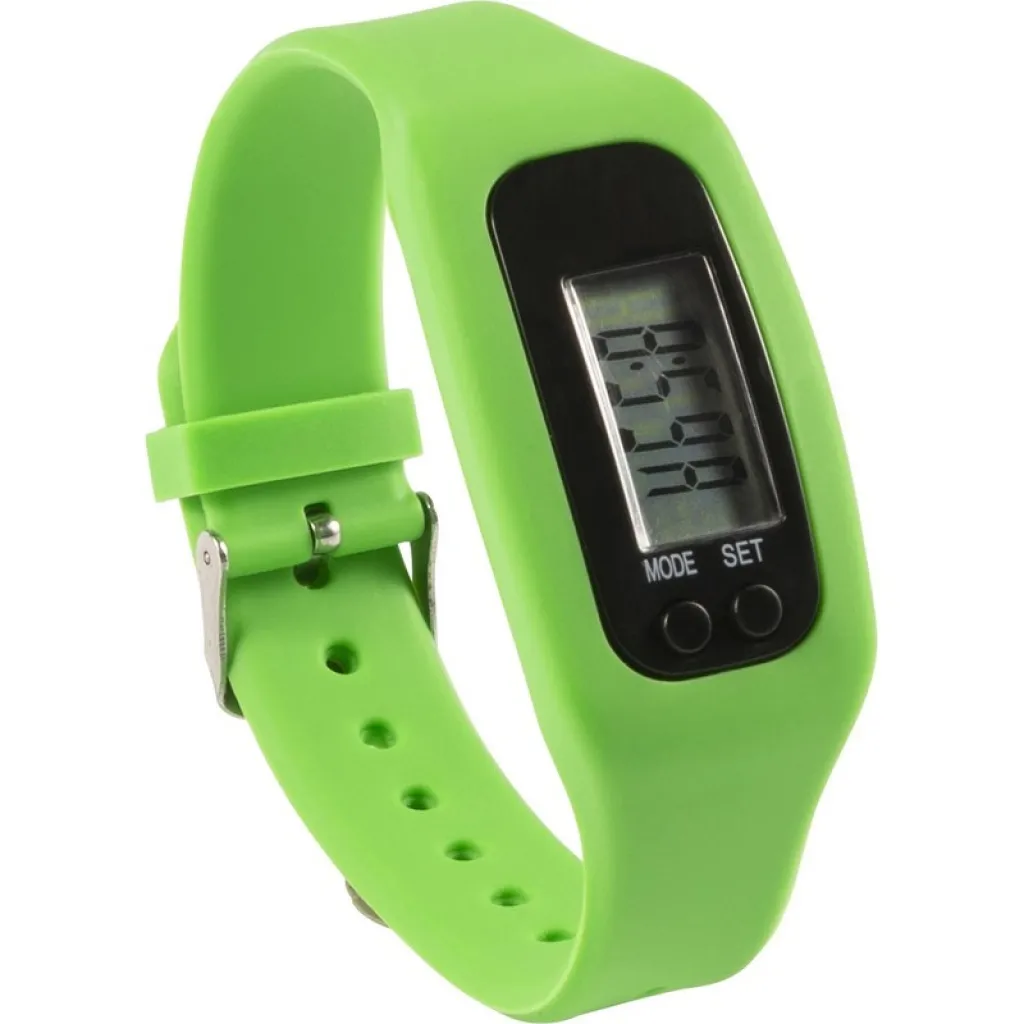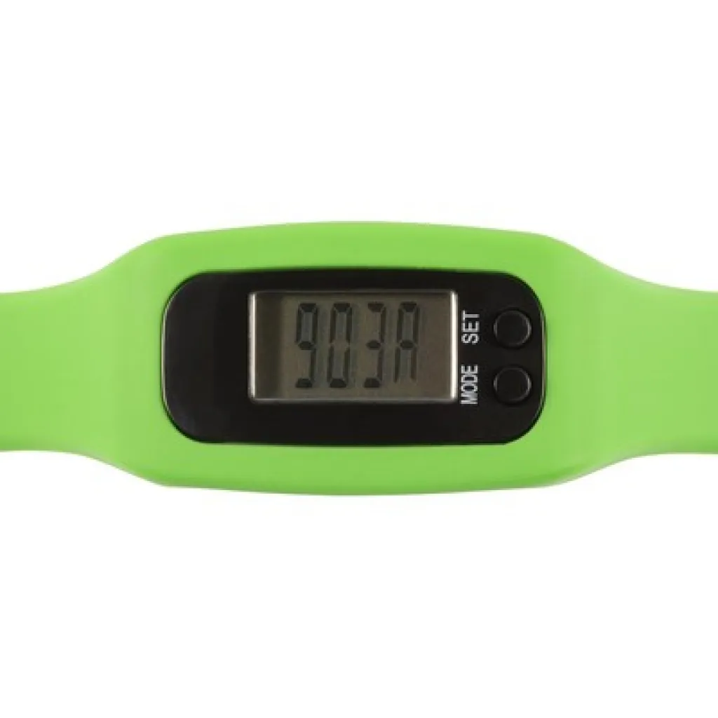 Wristband with pedometer, records steps (up to 99.999), calories and distance