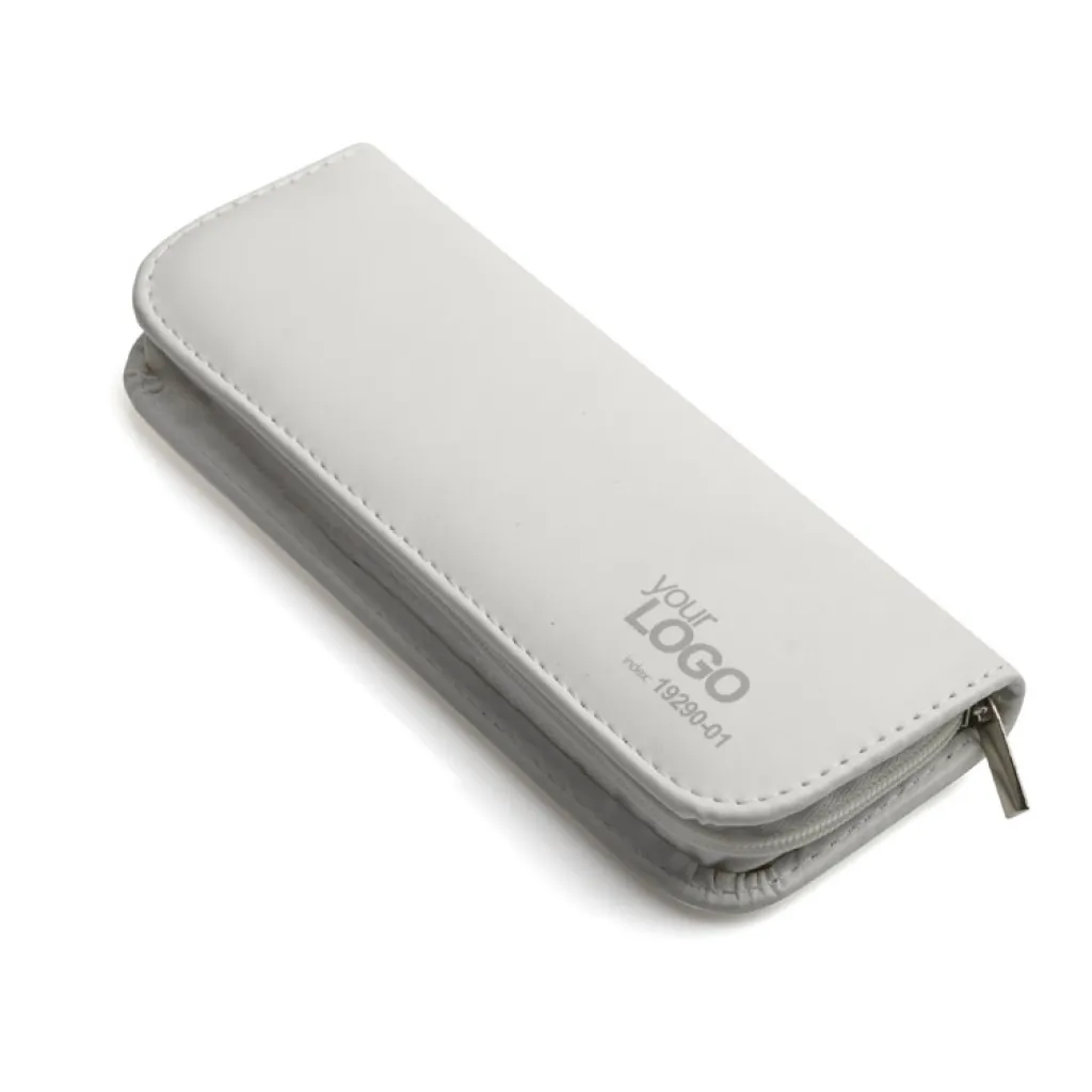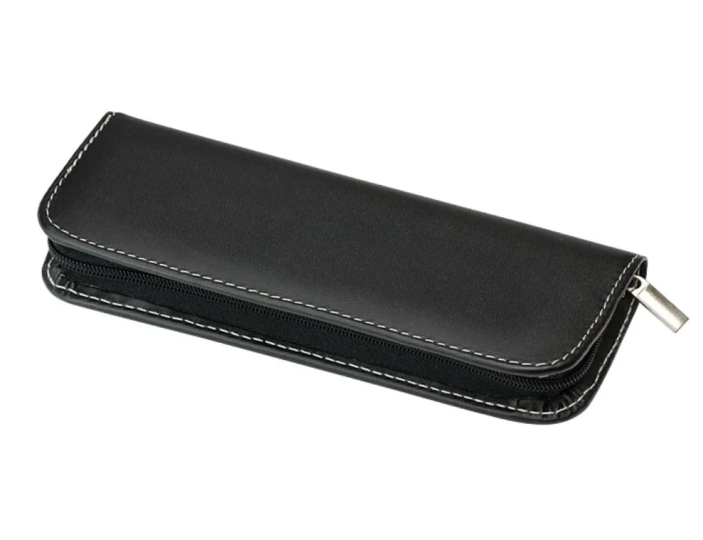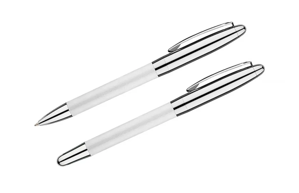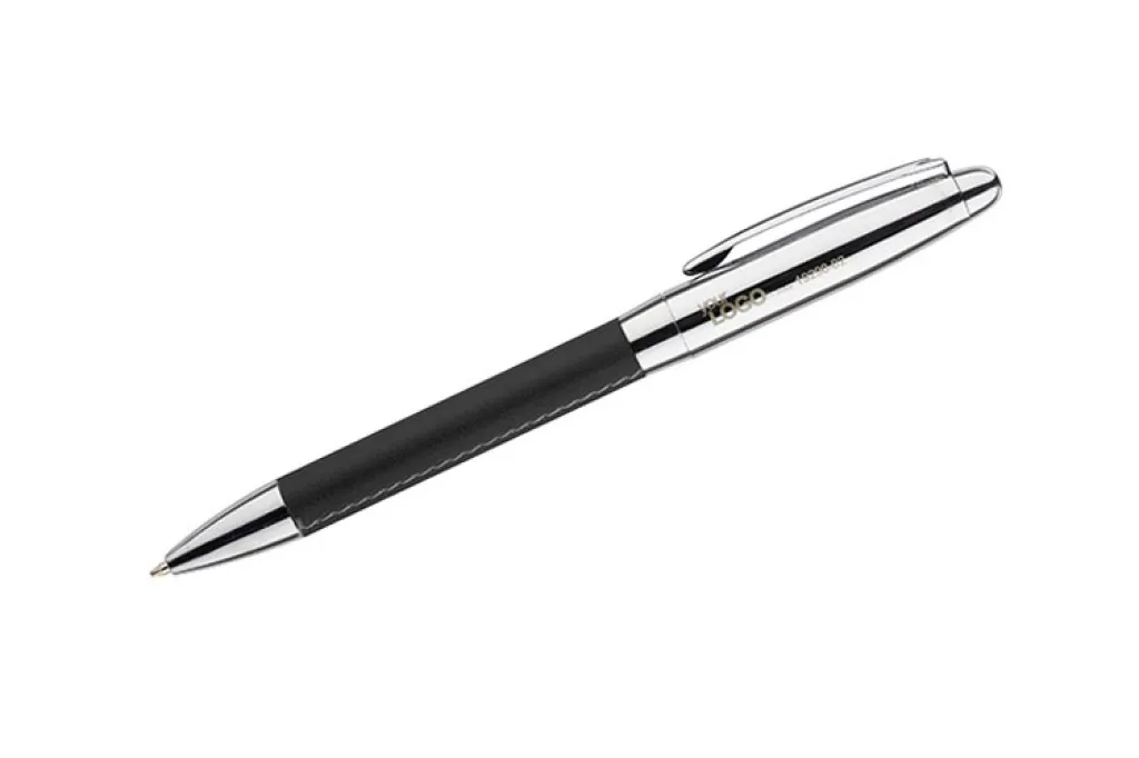 Writing set: ball pen and roller pen packed in case made of PU. Ball pen and roller pen with blue refill. Logo can be engraved on the ball pen and roller pen.