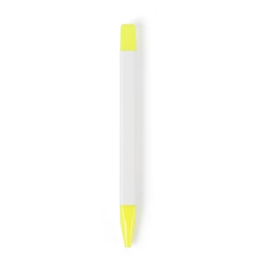 Writing set, pencil, highlighter and ball pens with caps that indicate ink colour