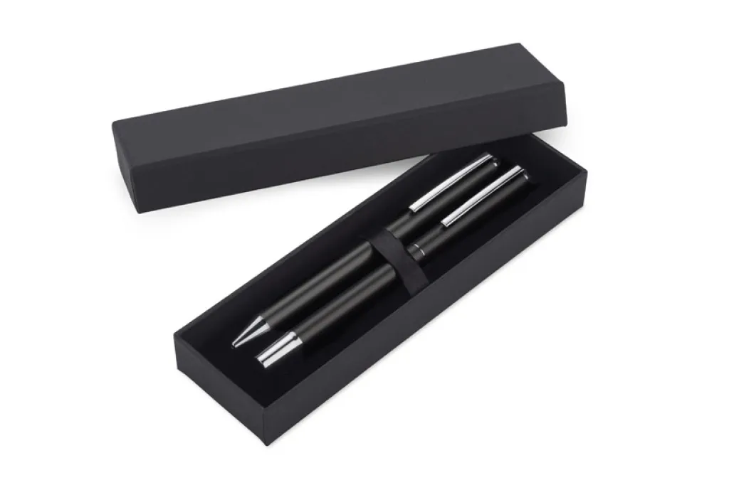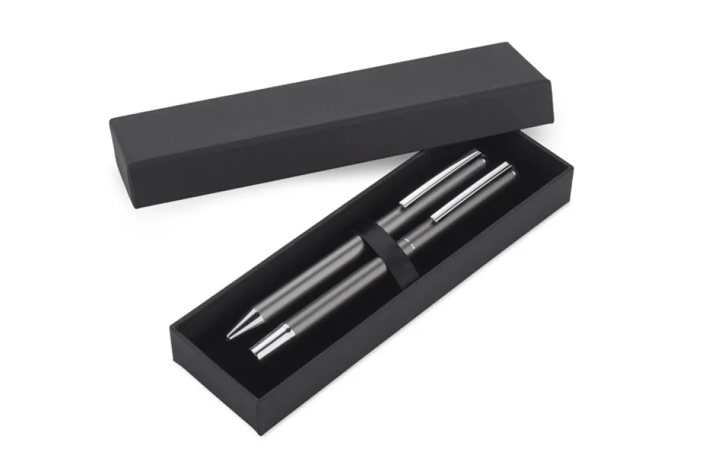 The ILLINOIS set is an aesthetically pleasing set comprising a pen and a ballpoint pen. It is made of recycled aluminium. The colour of the refill is blue.