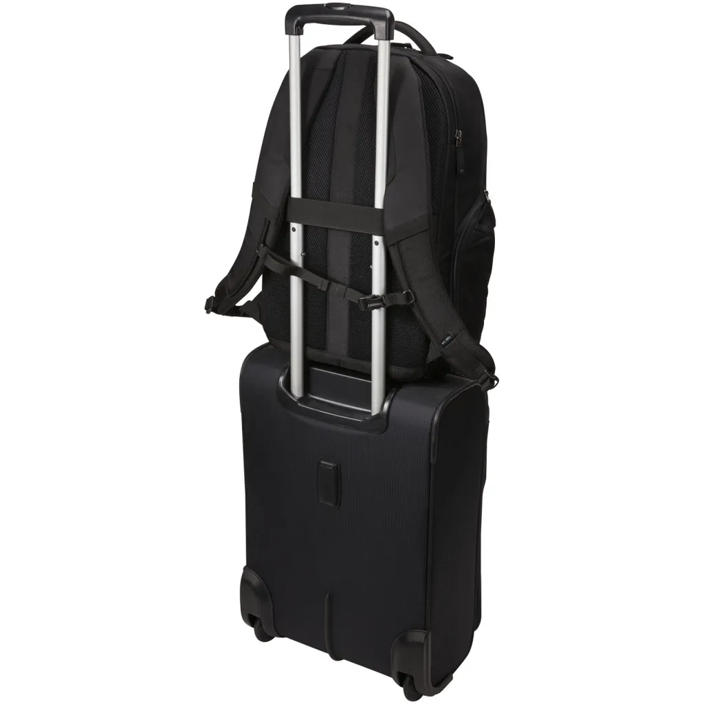 Sadrži veliki glavni odjeljak s patentnim zatvaračem, podstavljeni odjeljak za prijenosno računalo od 17,3 inča i 10,1 inčni tablet te mrežasti džep s patentnim zatvaračem za kabele i dodatke. Dolazi s prednjom organizacijskom pločom za pohranu male elektronike, kabela, dodataka, posjetnica i ključeva. Sadrži proširive bočne džepove za bocu vode ili prijenosnu bateriju, podstavljene naramenice, prošivanu mrežastu stražnju ploču, mekanu ručku i traku za pričvršćivanje na kolica. Case Logic garancija: 25 godina.