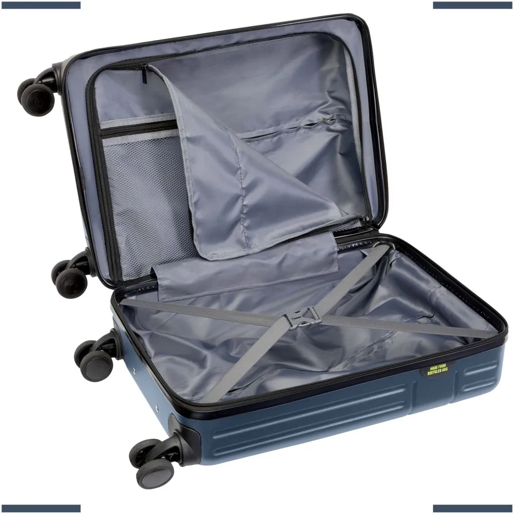 Izrađena od reciklirane plastike otporne na udarce i RPET podstave, 20" Rover torba za kabinu predstavljaju kvalitetu. Sadrži aluminijski okvir s dvostrukom cijevi, 360 stupnjeva vrtnju na četiri kotača, integriranu TSA bravu s kombinacijom, ručku za jednostavno hvatanje za udobnost i unutarnje pregrade za organizatore. Može se unijeti kao ručna prtljaga kod većine glavnih zračnih prijevoznika. Ova torba je GRS certificirana, uključujući i tisak, što je čini odgovornijim izborom.