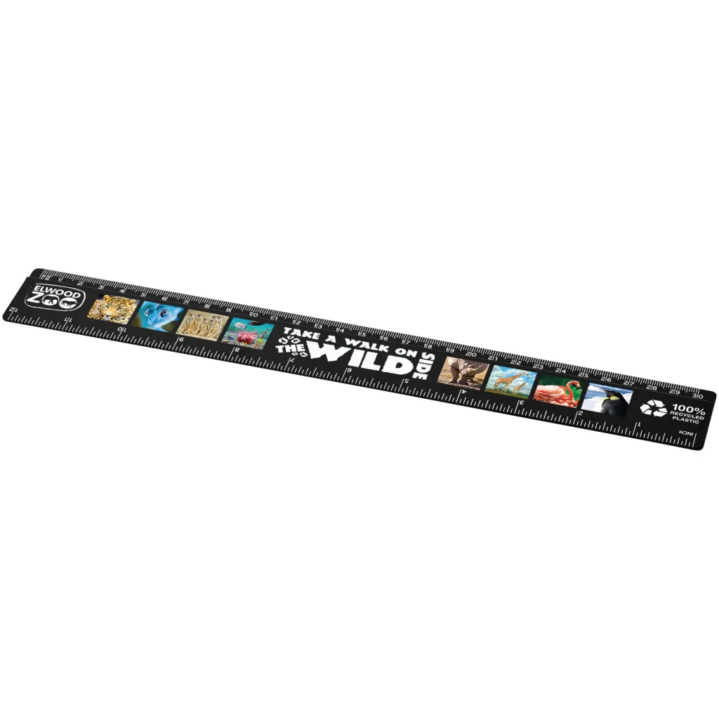 Ravnalo od čvrste reciklirane plastike s oznakama dostupnim u inčima i centimetrima. Ravnalo je prazno, za skalu je potrebno naručiti ravnalo s tiskom.