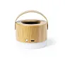 Bežični zvučnik BT 5.0 3W s ručkom, kućištem od bambusa i LED svjetlom. Baterija od 300 mAh, radna udaljenost do 10 m. USB punjiv (USB tip C kabel uključen), USB tip C ulaz.