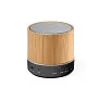 Prijenosni zvučnik izrađen od recikliranog ABS-a (100% rABS). Uz BT 5'3 bežični prijenos, ima čitač microSD kartica, 3.5 mm AUX izlaz i automatsku reprodukciju putem USB-A priključka. Njegova zvučna snaga od 3 W i baterija od 400 mAh daju mu približno trajanje baterije od 4 sata i 30 minuta. Omogućuje vam odgovaranje na pozive zahvaljujući ugrađenom mikrofonu, kontrolu glasnoće i playlistu vašeg mobilnog uređaja. Uključuje USB-C kabel za punjenje. Isporučuje se u poklon kutiji od recikliranog kraft papira, koja se može ponovno koristiti kao držač za pametni telefon. Ako nije odabrana personalizacija, rešetka se isporučuje odvojena unutar poklon kutije. Jednom pričvršćena na zvučnik, rešetka se više ne može ukloniti. Budući da je proizvod izrađen od prirodnih materijala, boja te rezultat ispisa mogu se razlikovati od proizvoda do proizvoda. ø60 x 52 mm | Kutija: 65 x 63 x 75 mm