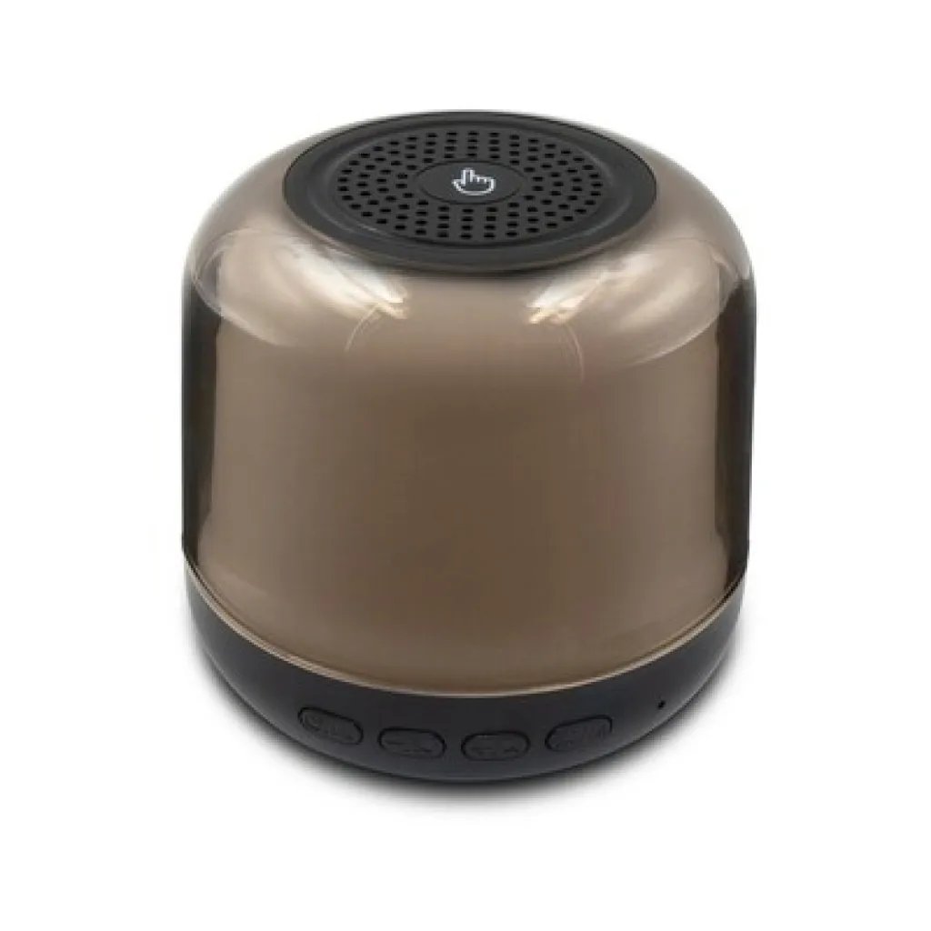 Bežični zvučnik BT 5.3 5W s RGB svjetlom sa 7 načina osvjetljenja i toplim bijelim svjetlom (3 intenziteta svjetla) s funkcijom podešavanja dodirom. Baterija od 500 mAh, utor za TF/micro SD karticu (nije uključena). S funkcijom javljanja na pozive i TWS funkcijom uparivanja. Radna udaljenost do 10 m, USB tip C ulaz, USB punjiv, USB tip C kabel uključen.