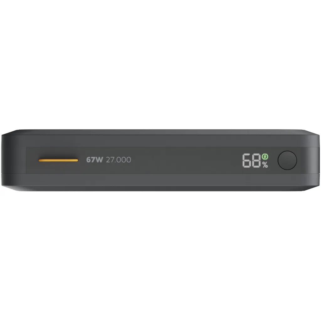 Prijenosna baterija serije Fuel velikog kapaciteta od 27.000 mAh ima 2 ultrabrza USB-C PD priključka i jedan USB-A priključak. To vam omogućuje brzo punjenje raznih mobilnih uređaja, pa čak i prijenosnih računala! Jedinstveni uzorak na power banku stvara moćan izgled. Izlaz: 1 USB-C snage 67 W, 1 USB-C snage 27 W i 1 USB-A 22,5 W. Isporučuje se s USB-C na USB-C kabelom i korisničkim priručnikom.