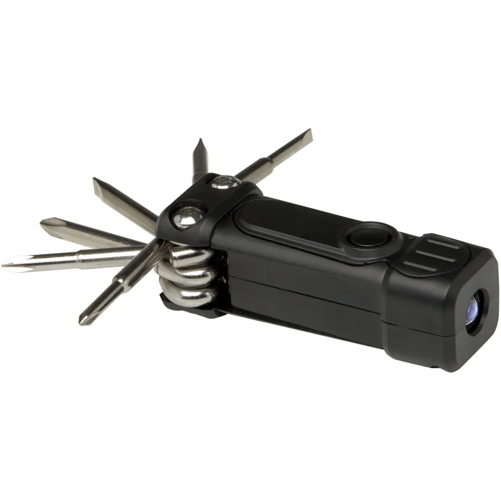 Kompaktni 8 u 1 set odvijača s baterijskom svjetiljkom izrađen od 20% RCS certificirane reciklirane plastike. Recycled Claim Standard (RCS) potvrđuje reciklirani sadržaj proizvoda kroz cijeli lanac opskrbe. Ovaj praktični alat sadrži dva LED svjetla, tri Phillips glave i tri ravne glave. Dolazi s tri LR44 baterije. Pakiran u STAC poklon kutiju od održivih izvora.