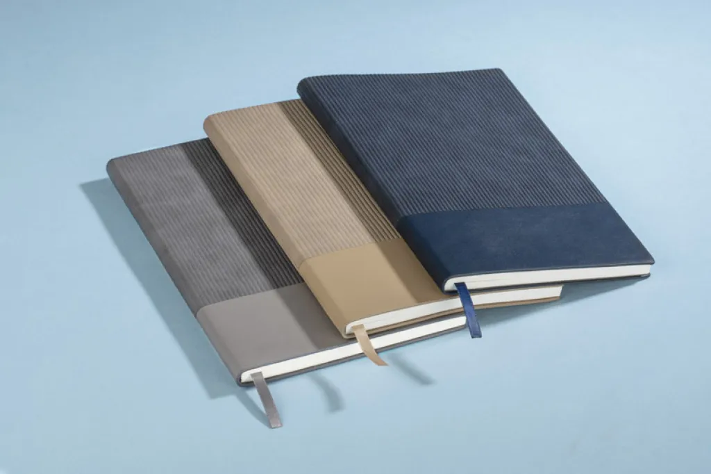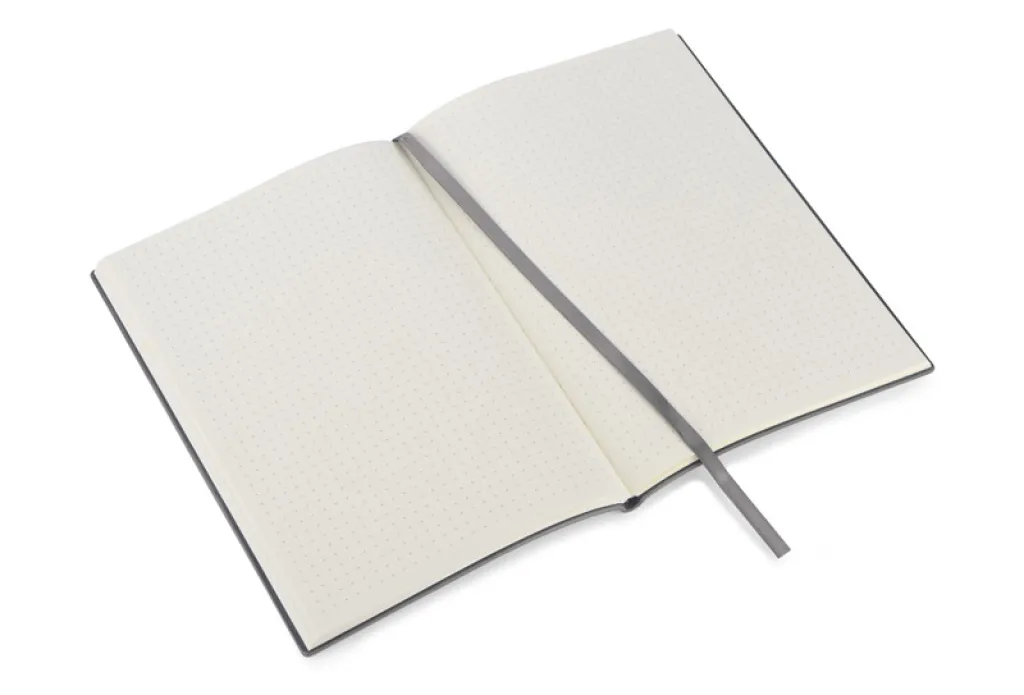 FLAF notes A5 formata s mekim koricama izrađenim od kombiniranih materijala eko kože i imitacije samta koji je izuzetno ugodan na dodir. Dostupan je u 3 prigušene i elegantne boje, s 80 lisova s točkicama i vrpcom za označavanje stranica.