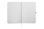 A5 notes presvučen recikliranim pamukom s 80 listova od recikliranog papira s crtama. S vrpcom za označavanje, elastičnom trakom za zatvaranje i držačem olovke.