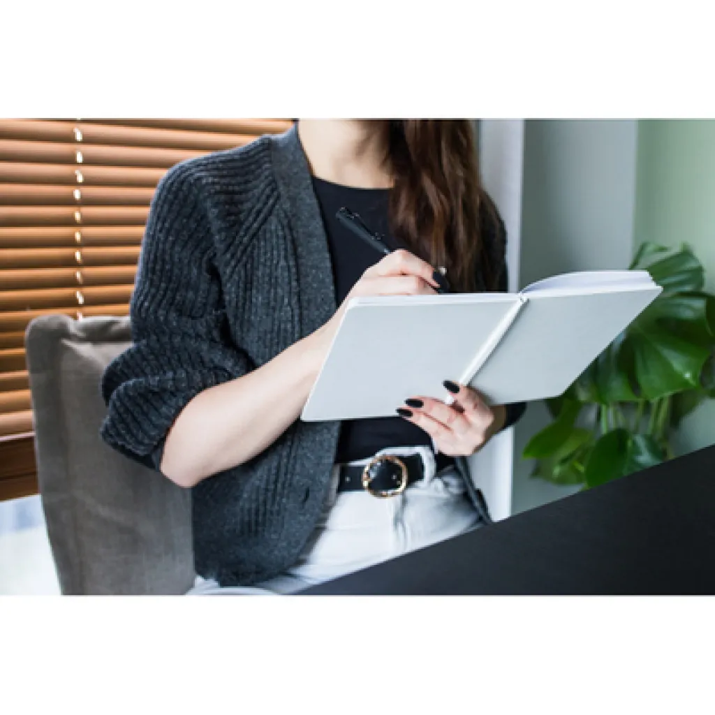 Notes veličine A5 s 80 listova s crtama, tvrdim koricama i vrpcom za označavanje stranica.