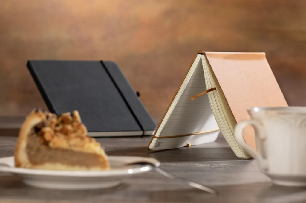 Notes GLITZO ima 80 recikliranih kariranih stranica, kompaktnog je A5 formata i tvrdih korica od recikliranog PU-a. Proizvod se zatvara praktičnom elastičnom trakom kako bi vaše bilješke bile sigurne i vrpcom koja služi kao oznaka, što vam omogućuje da lako pronađete gdje ste stali. Osim toga, notes ima mjesta za kemijsku olovku, što ga čini još funkcionalnijim.