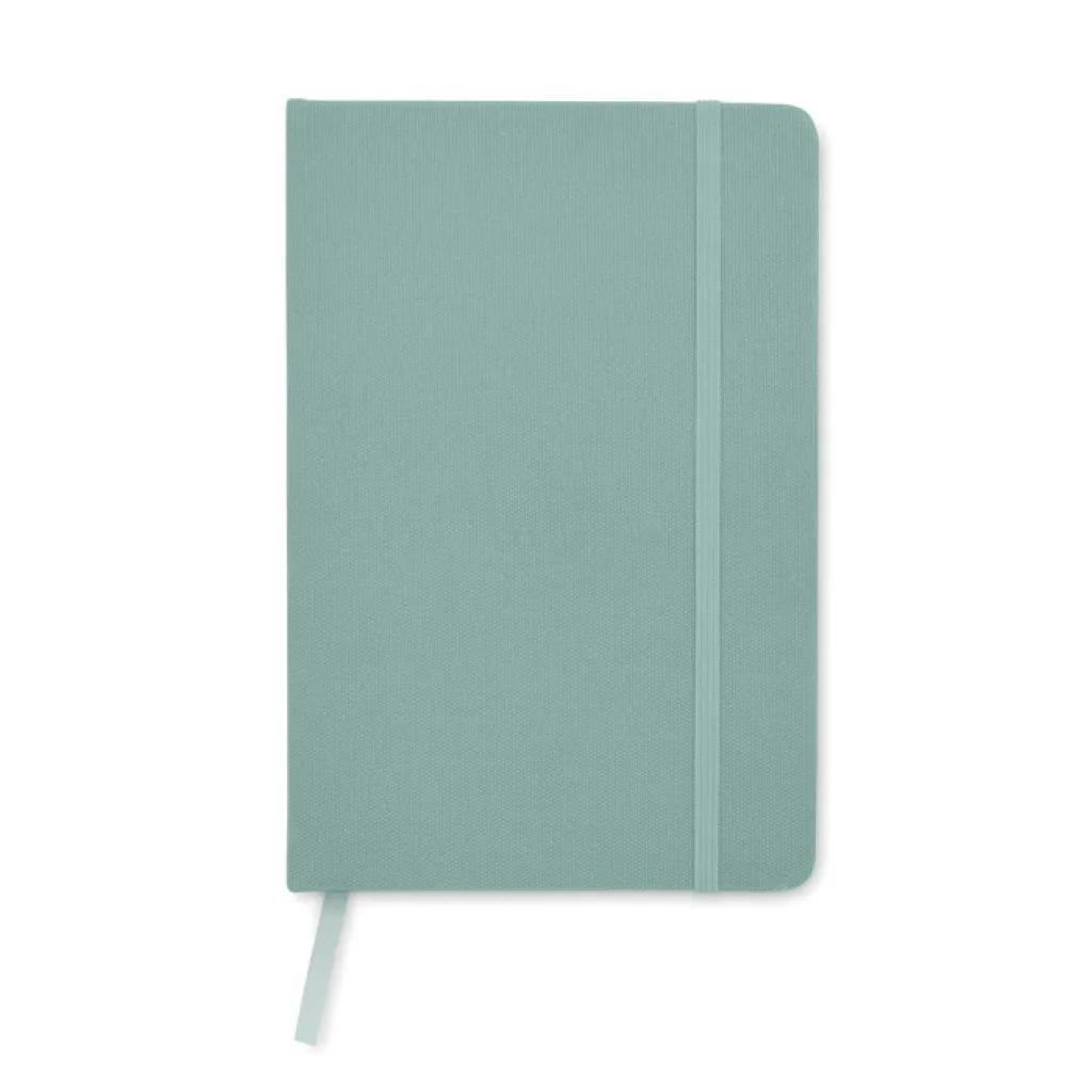 Notes A5 s tvrdom koricom 600D RPET i 80 stranica od recikliranog papira s gumicom i vrpcom za označavanje stranica.