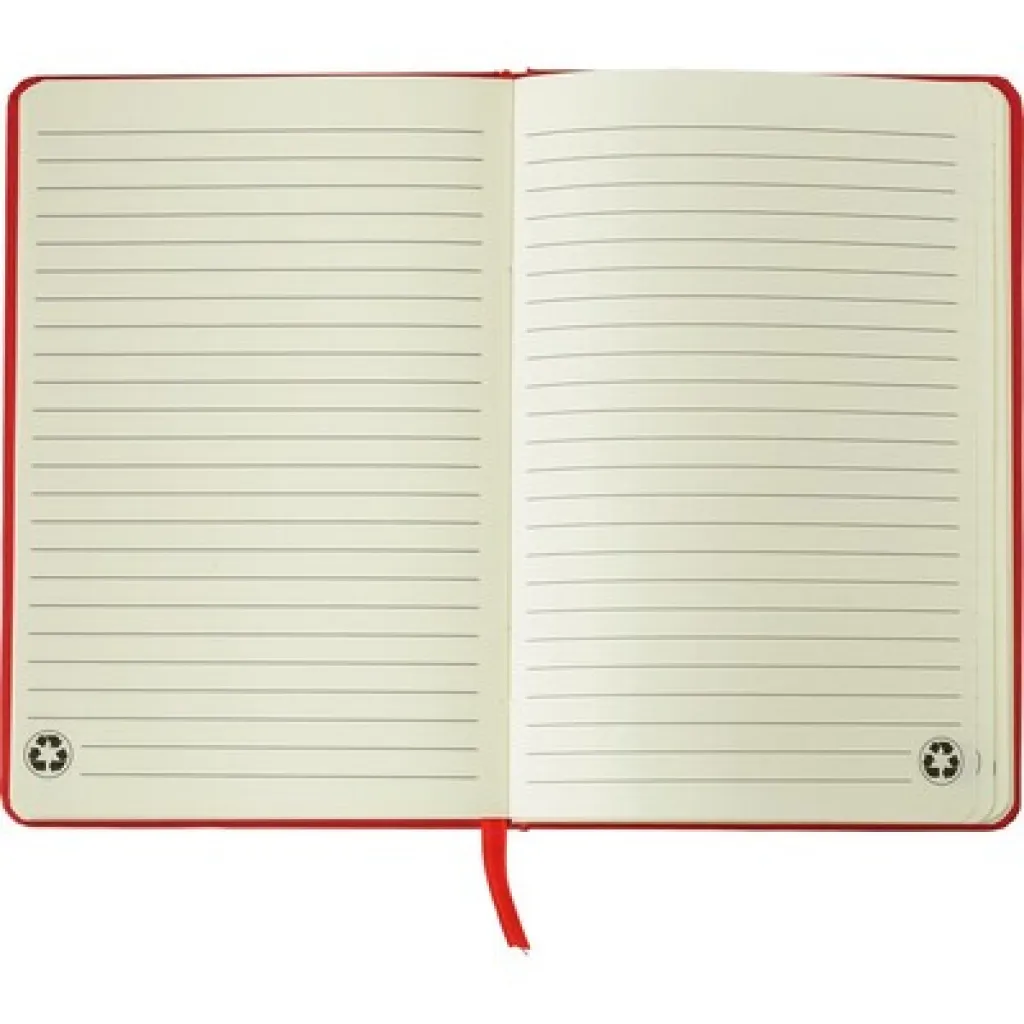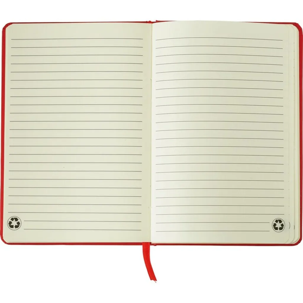Notes veličine A5 s 80 listova s crtama, koricama od recikliranog kartona, vrpcom za označavanje stranica i elastičnom trakom za zatvaranje.