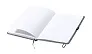 Notes veličine A5 s koricama prekrivenim 600D RPET poliesterom. Sadrži 100 stranica s crtama, vrpcu za označavanje stranica i elastičnu traku za zatvaranje.