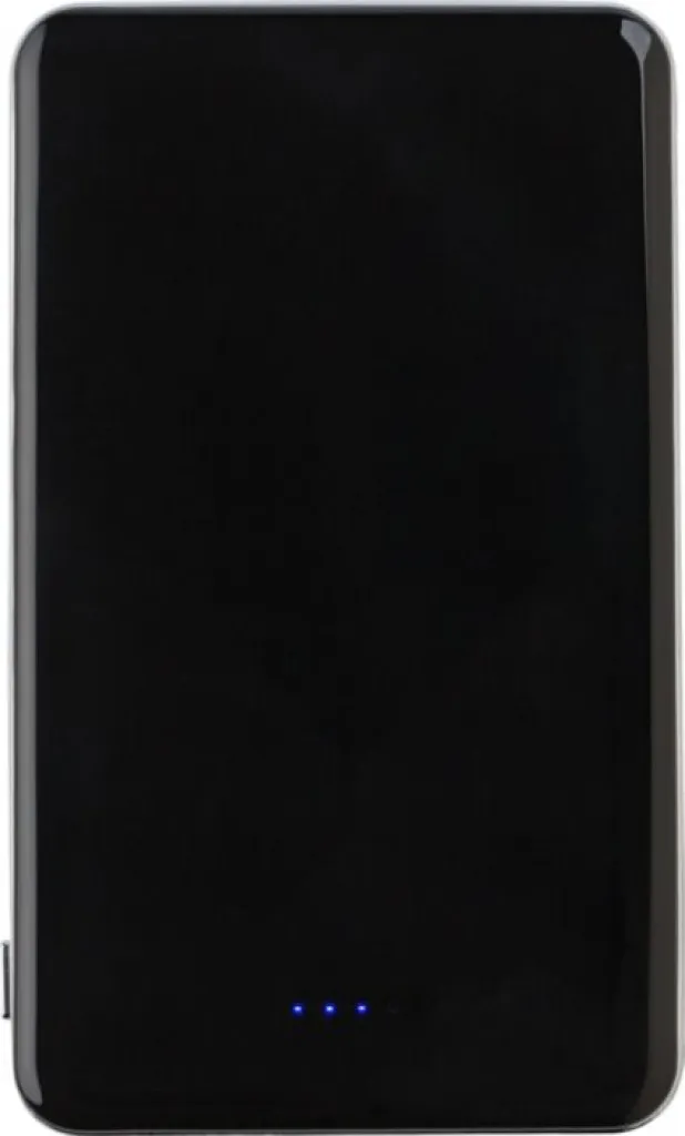 ABS prijenosna baterija kapaciteta 5.000 mAh, Li-polimer baterija, ulaz 5V/1000mA, izlaz 1500mA/2100mA/5V. Uključuje 5 plavih LED indikatora napunjenosti i USB/Micro USB kabel (duljine približno 32 cm).