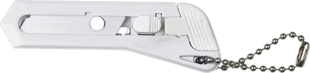 Mali skalpel za kutije od ABS-a s privjeskom za ključeve. Ukupna dužina oštrice je 4 cm (širina: 1,1 cm).