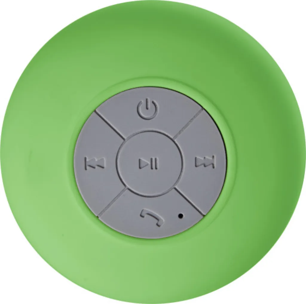 ABS zvučnik (2W) s bežičnom tehnologijom za glazbu i handsfree pozive u tušu, vodootporan. S usisnom čašicom za postavljanje na glatke površine. Trajanje baterije: približno 2 sata.